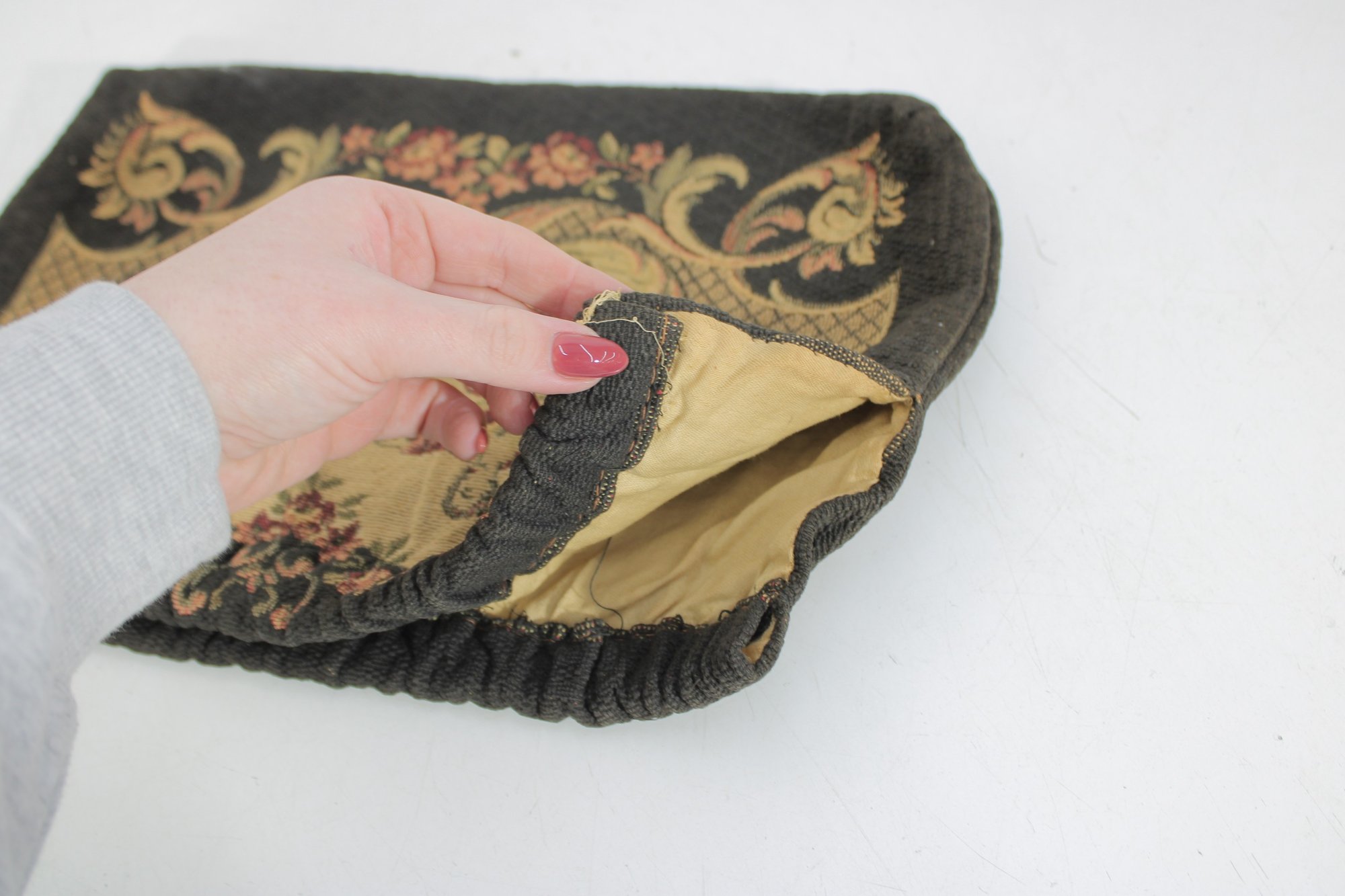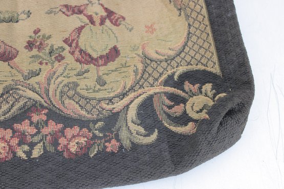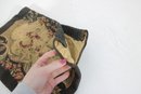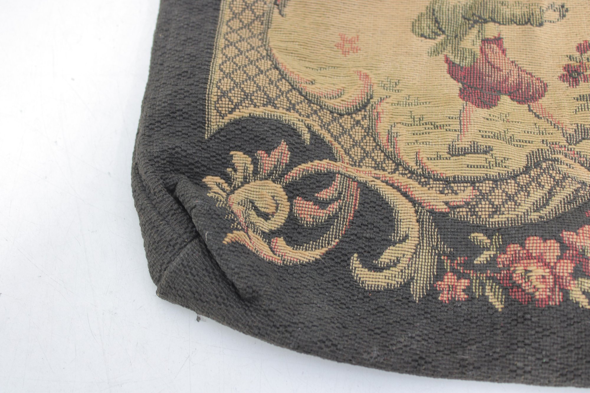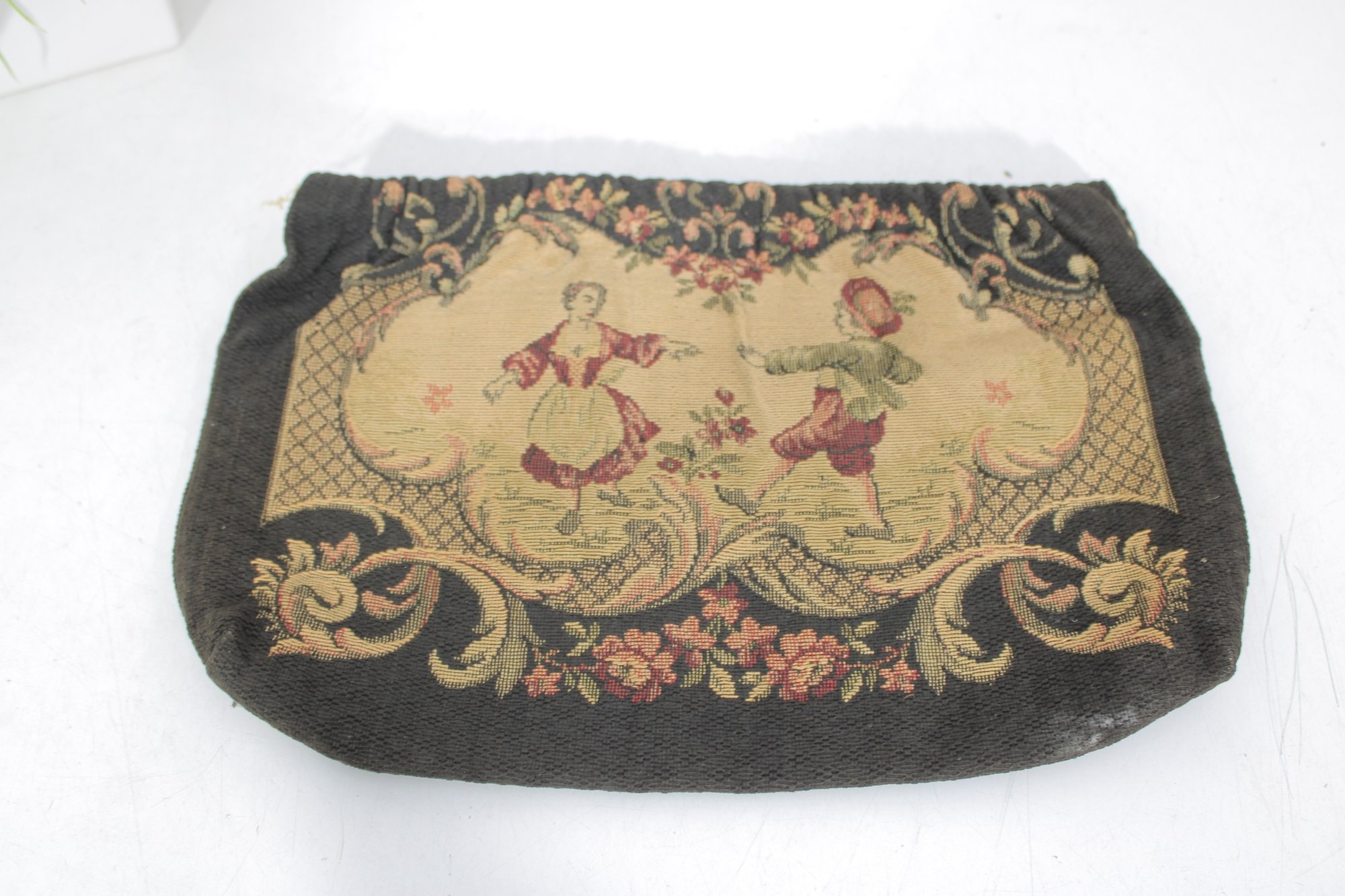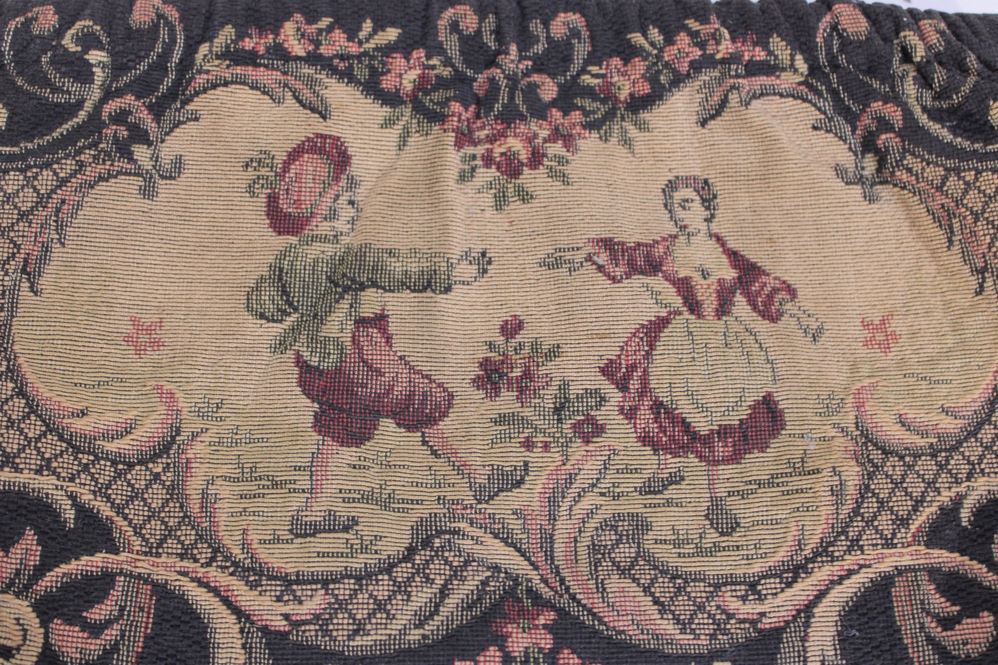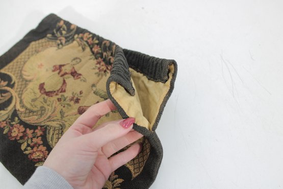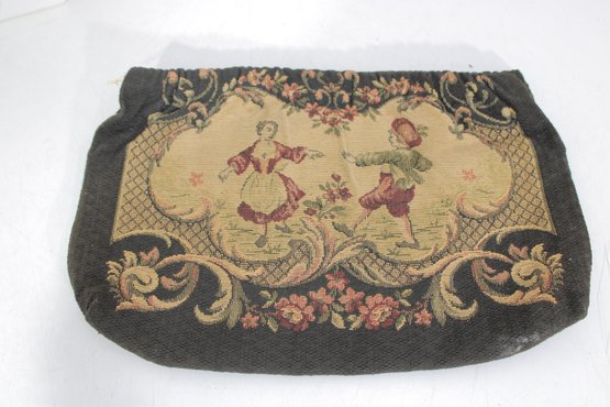 Vintage Tapestry Sawing Bag Romantic Figural Scene Woven Fabric Purse 11 X 16