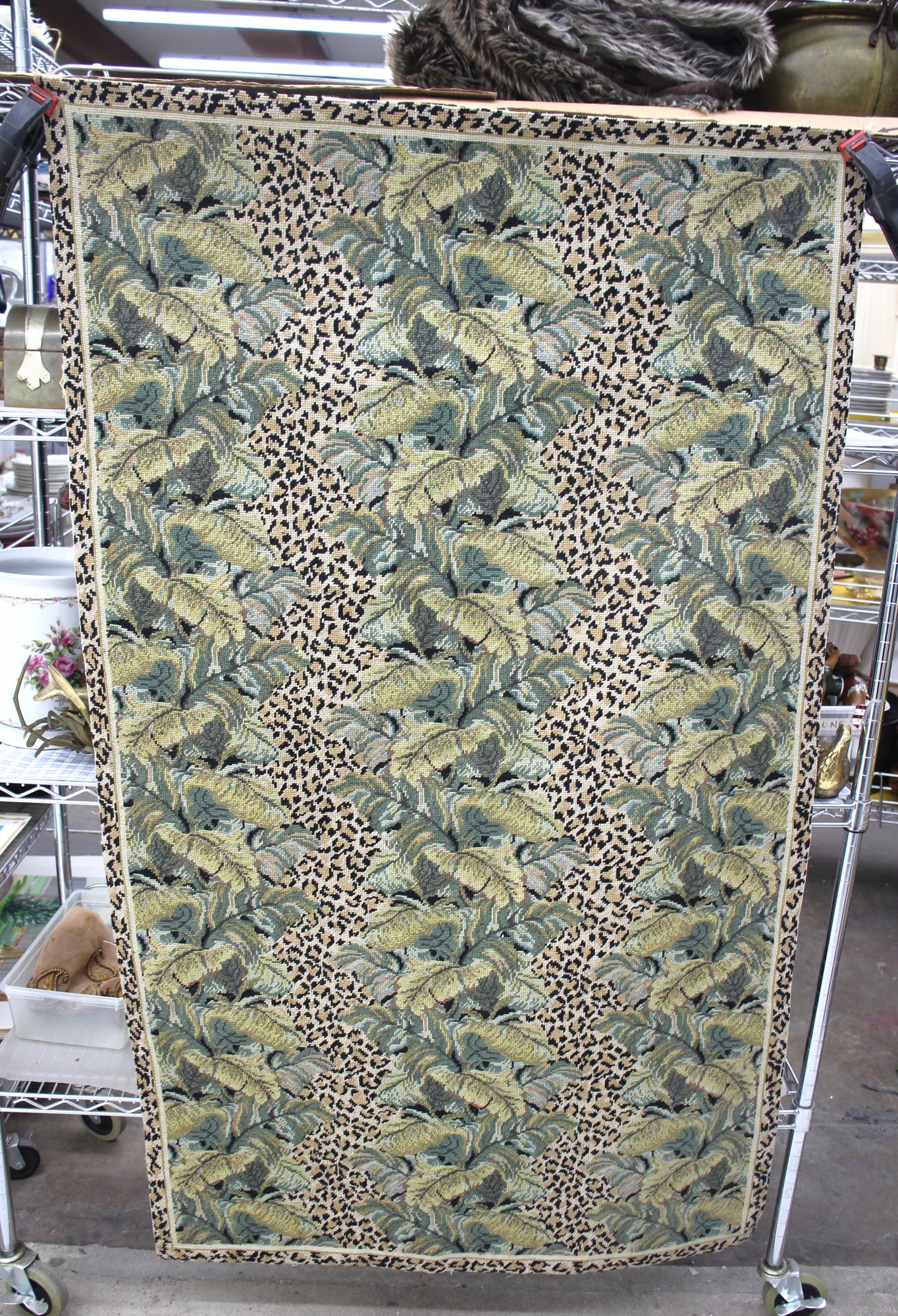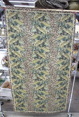 This exquisite vintage tapestry is a stunning piece of craftsmanship, featuring a vibrant tropical foliage design complemented by an elegant leopard print border. Measuring 61" x 36", this versatile piece is ideal as a wall hanging, table runner, or decorative accent for your home.