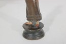 The piece appears to be made of spelter or cast metal with a painted finish, mounted on a round pedestal base. The style reflects late Victorian / Art Nouveau inspired design, often seen in early decorative figurines.
