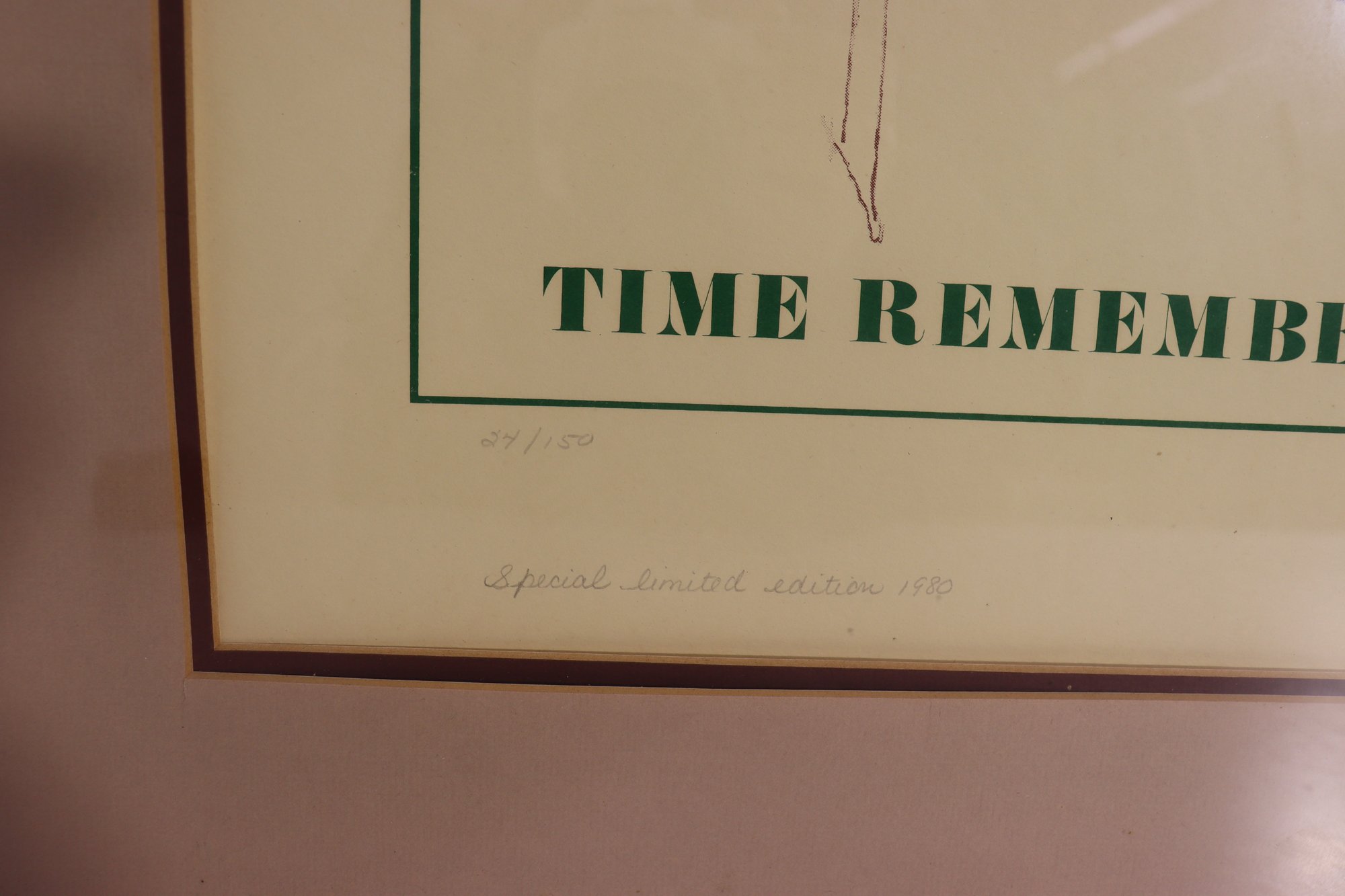 a decorative vintage theatre poster for Berkshire Playhouse, promoting the production Time Remembered by Thornton Wilder. The artwork features expressive line illustrations and period typography, capturing the whimsical, literary spirit associated with classic American theatre.