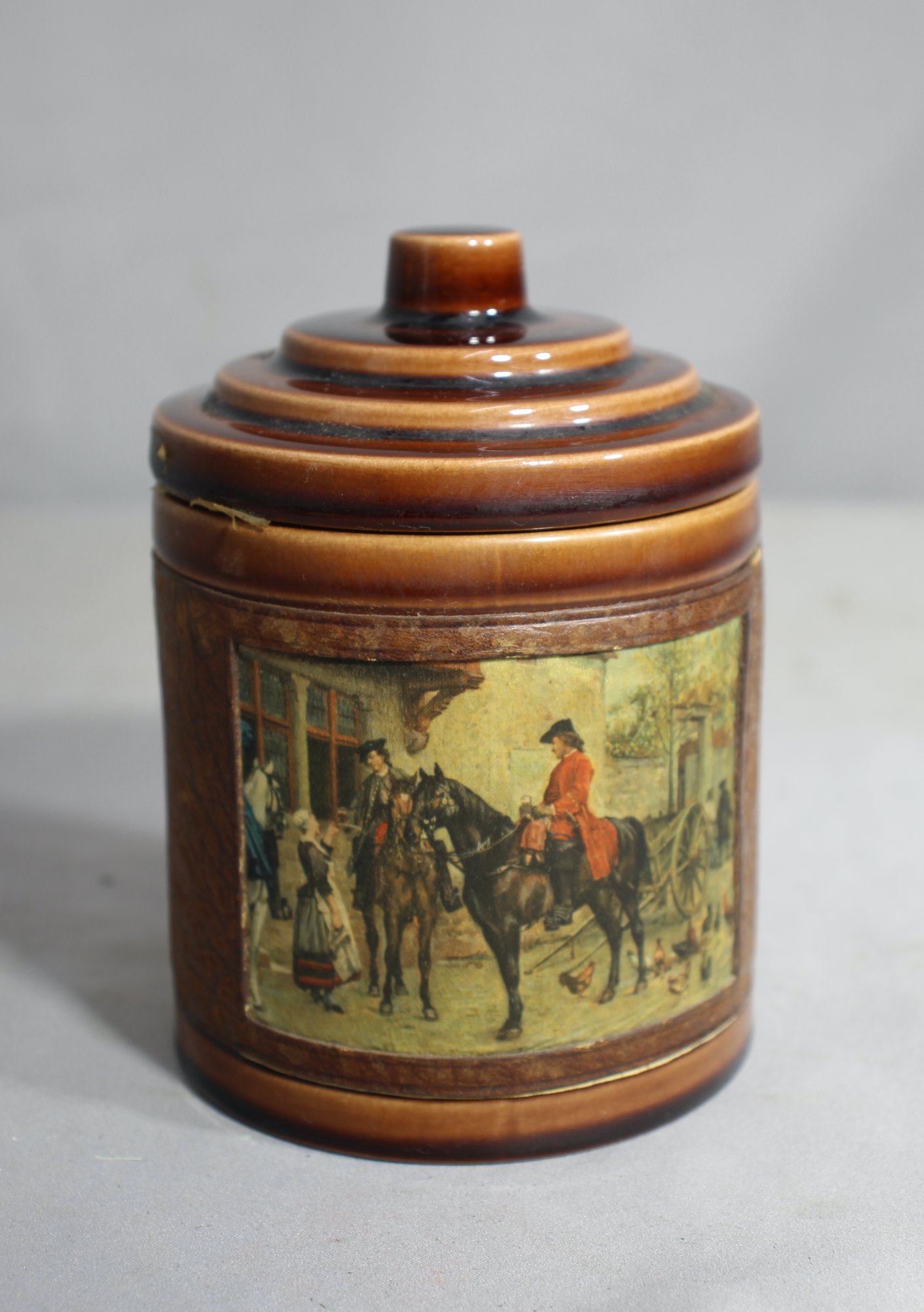 Vintage Tobacco Jar With Countryside Equestrian Scene