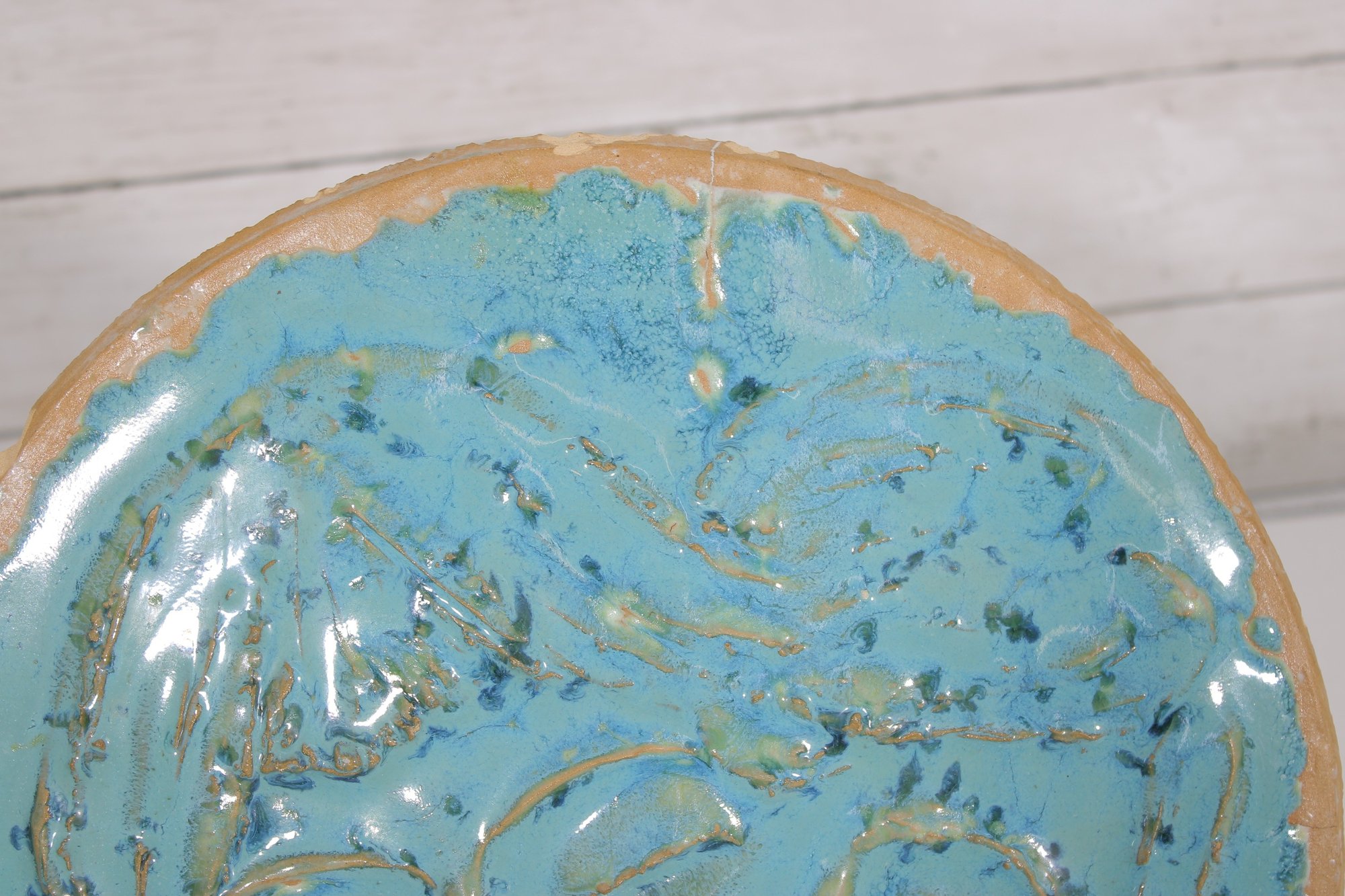 This unique piece blends artistic craftsmanship with a mid-century modern or studio pottery aesthetic—perfect for collectors of decorative ceramics, folk art, or statement wall décor.