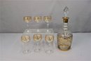 Vintage Venetian Style Gold Banded Coupes (6) And Decanter With Teardrop Finial