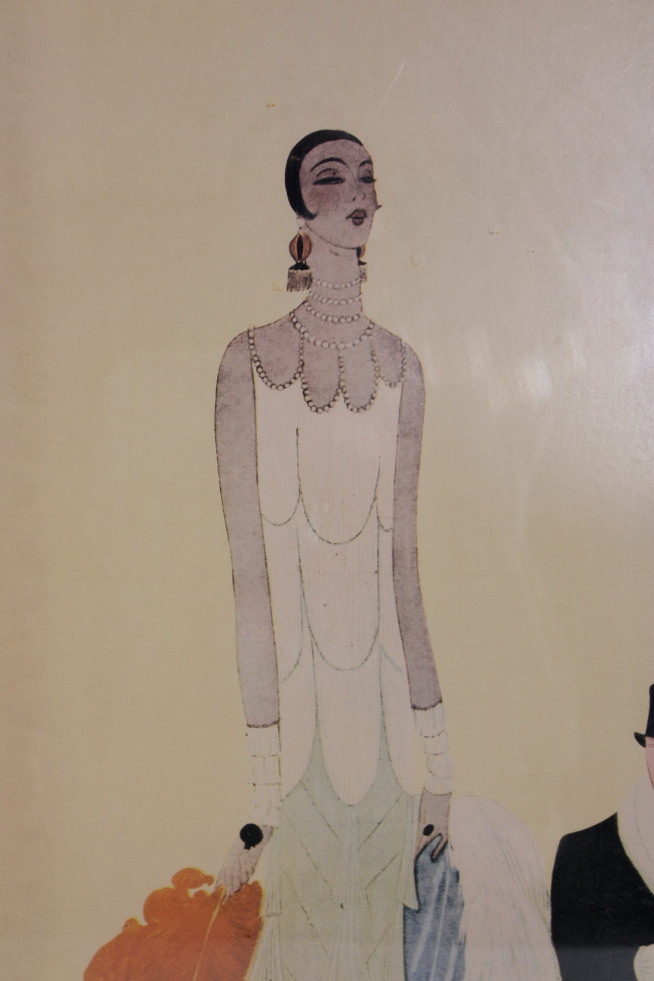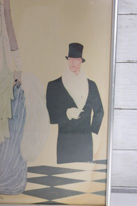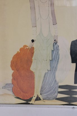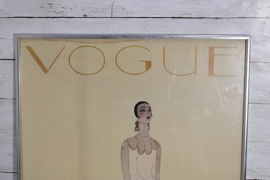 vintage VOGUE fashion print featuring a refined Art Deco–style illustration of a stylish figure surrounded by fashionable silhouettes. The minimalist composition, soft pastel tones, and iconic VOGUE typography create a sophisticated piece that embodies classic fashion illustration design.