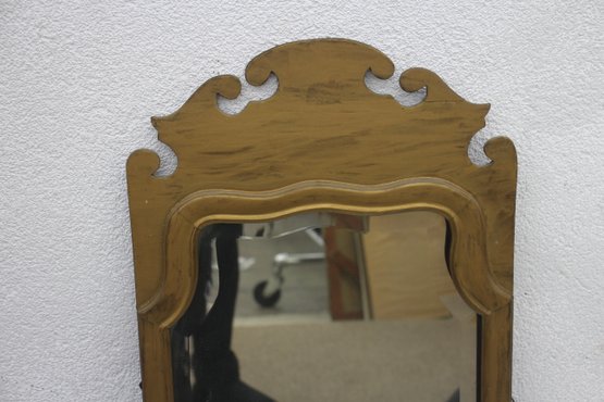 vintage wall mirror features a beautifully crafted scalloped wooden frame, blending classic design with timeless appeal. Perfect for adding a touch of sophistication to any room, this mirror is both functional and decorative.