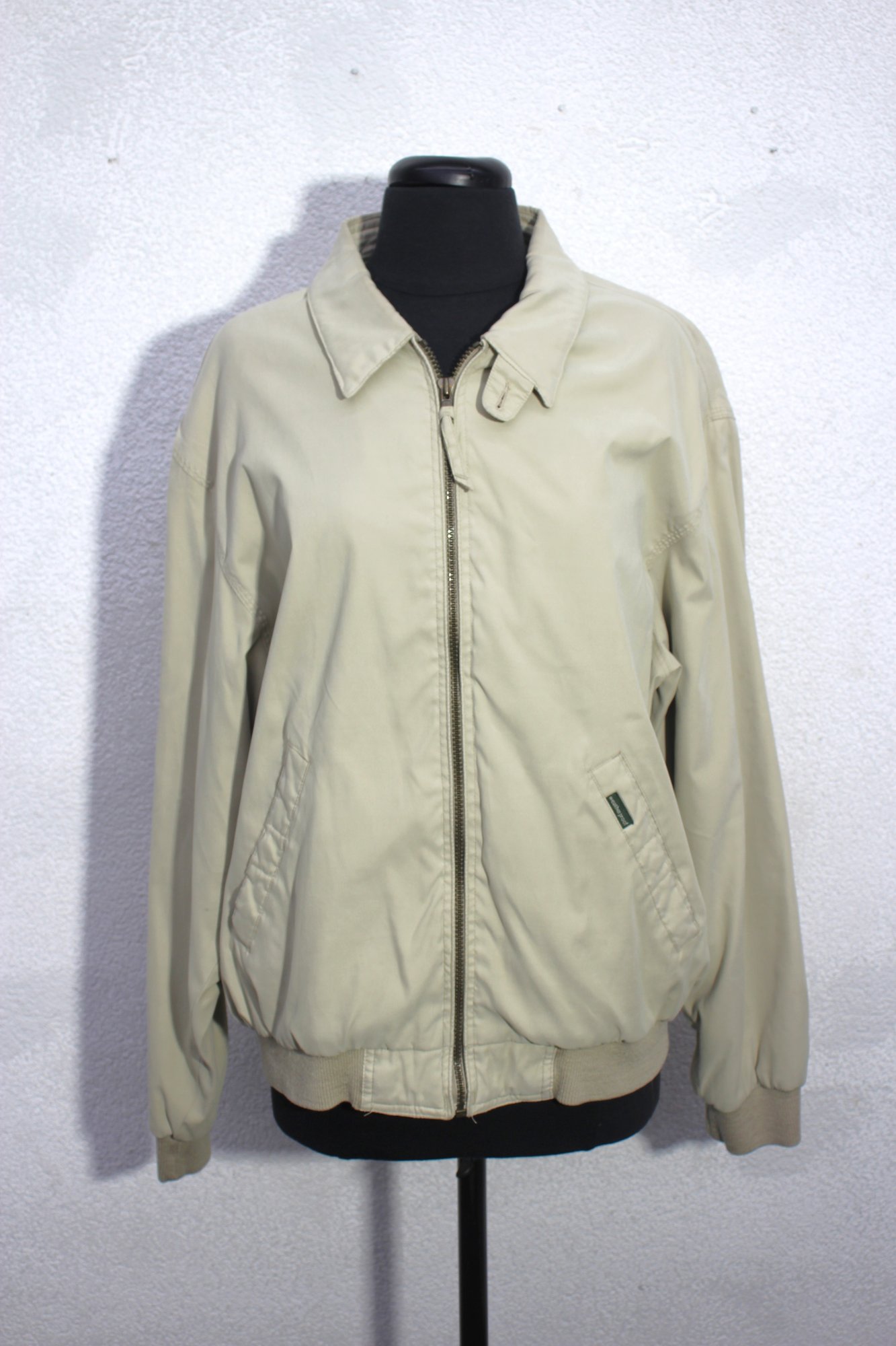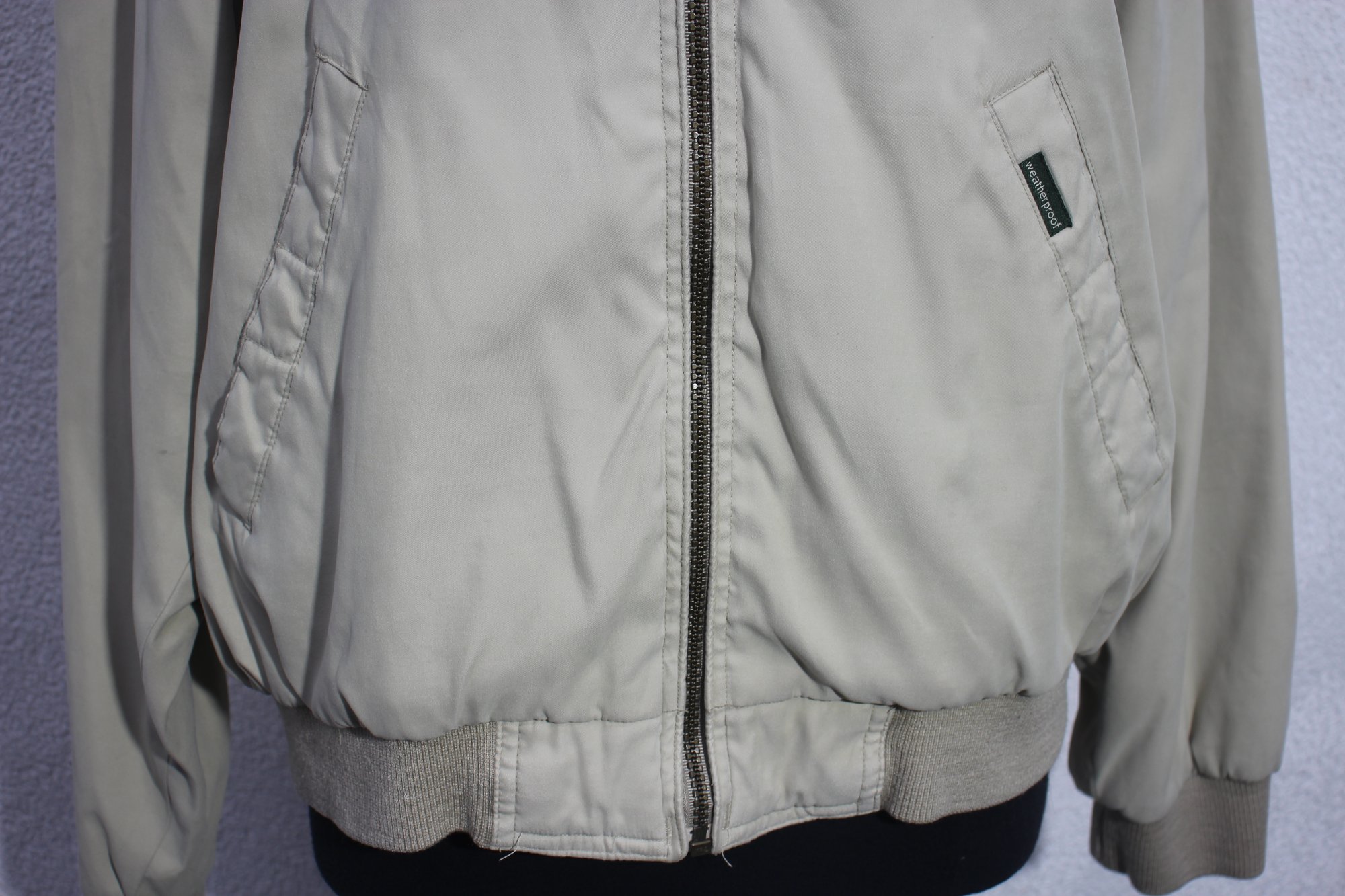 this vintage Weatherproof men’s Harrington jacket in a timeless beige color. Designed for both comfort and style, this lightweight jacket is perfect for everyday wear, offering a classic and versatile look.