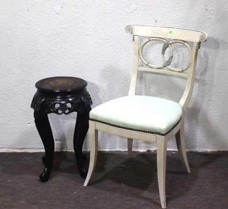 Intricate Painted Top: The circular tabletop has a faded but intriguing hand-painted design, adding to its antique charm.