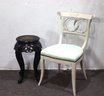 Solid Wood Frame: Painted in an antique white finish with graceful curved legs.