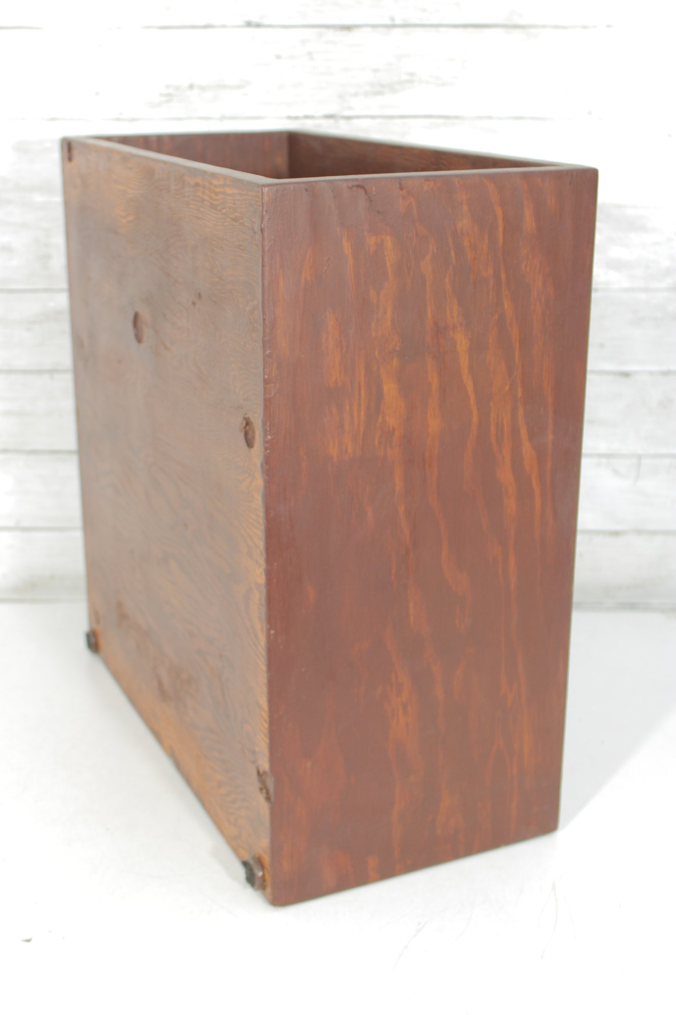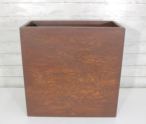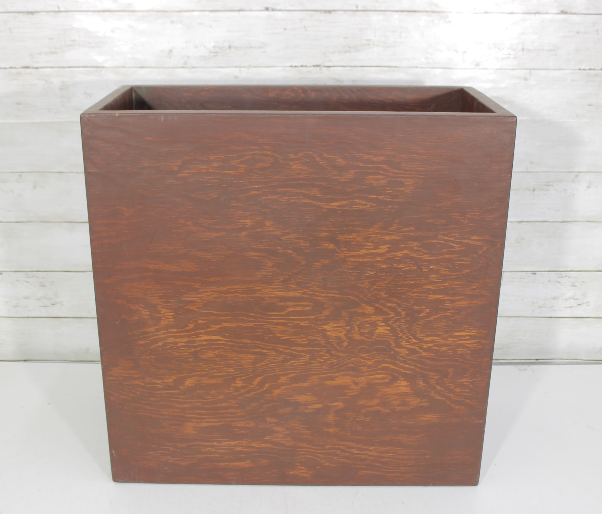 Simple and versatile vintage wood cube cabinet featuring a warm woodgrain finish and open-front design.