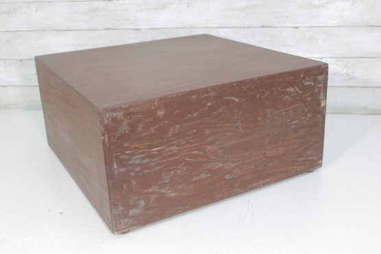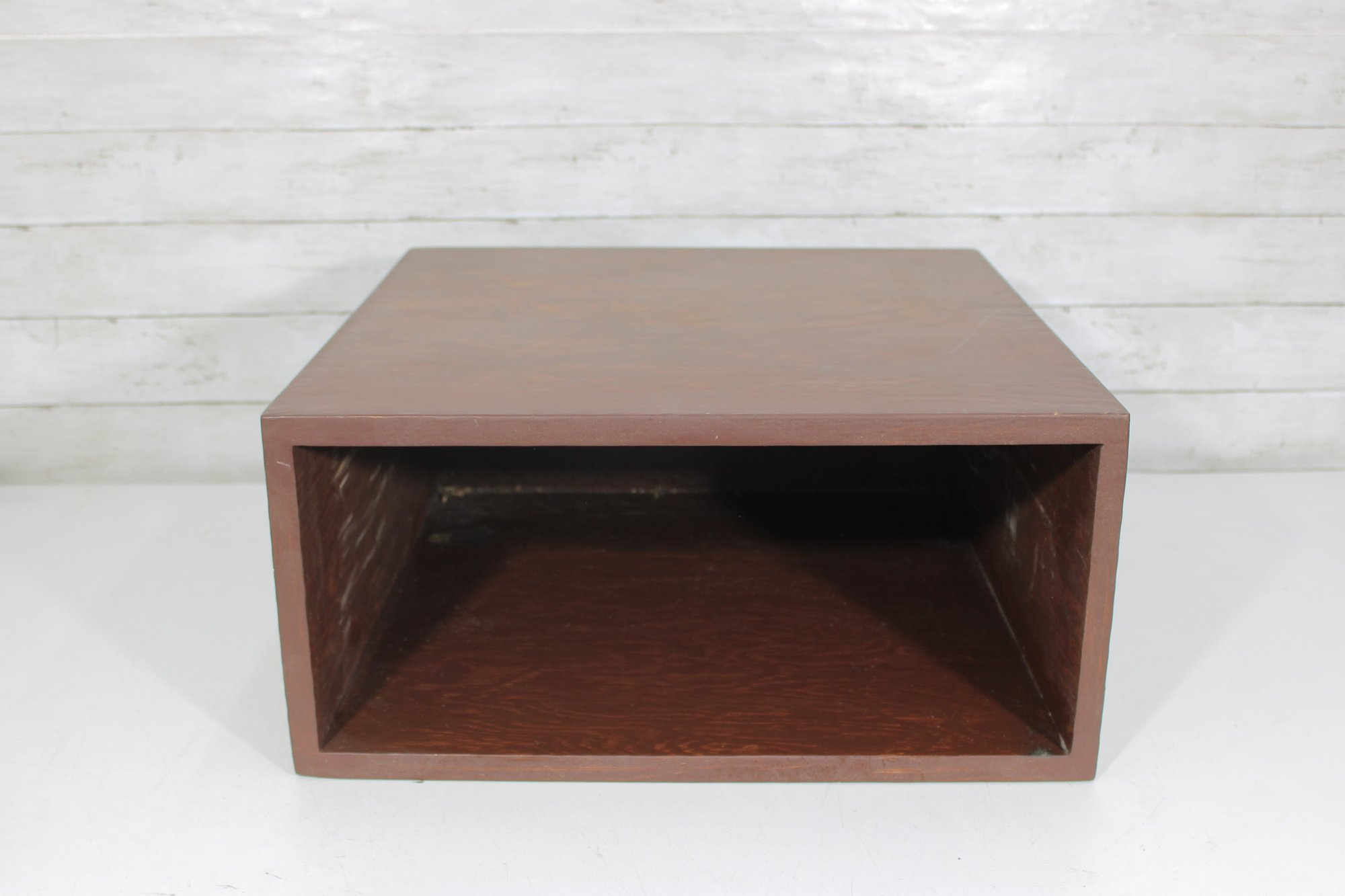 This piece measures approximately 9.5" high x 20" wide x 20" deep and can be used in multiple ways — as a small cabinet, display cube, record storage, side table base, or stacked shelving component. The clean lines and boxy form give it a subtle mid-century modern or minimalist aesthetic.