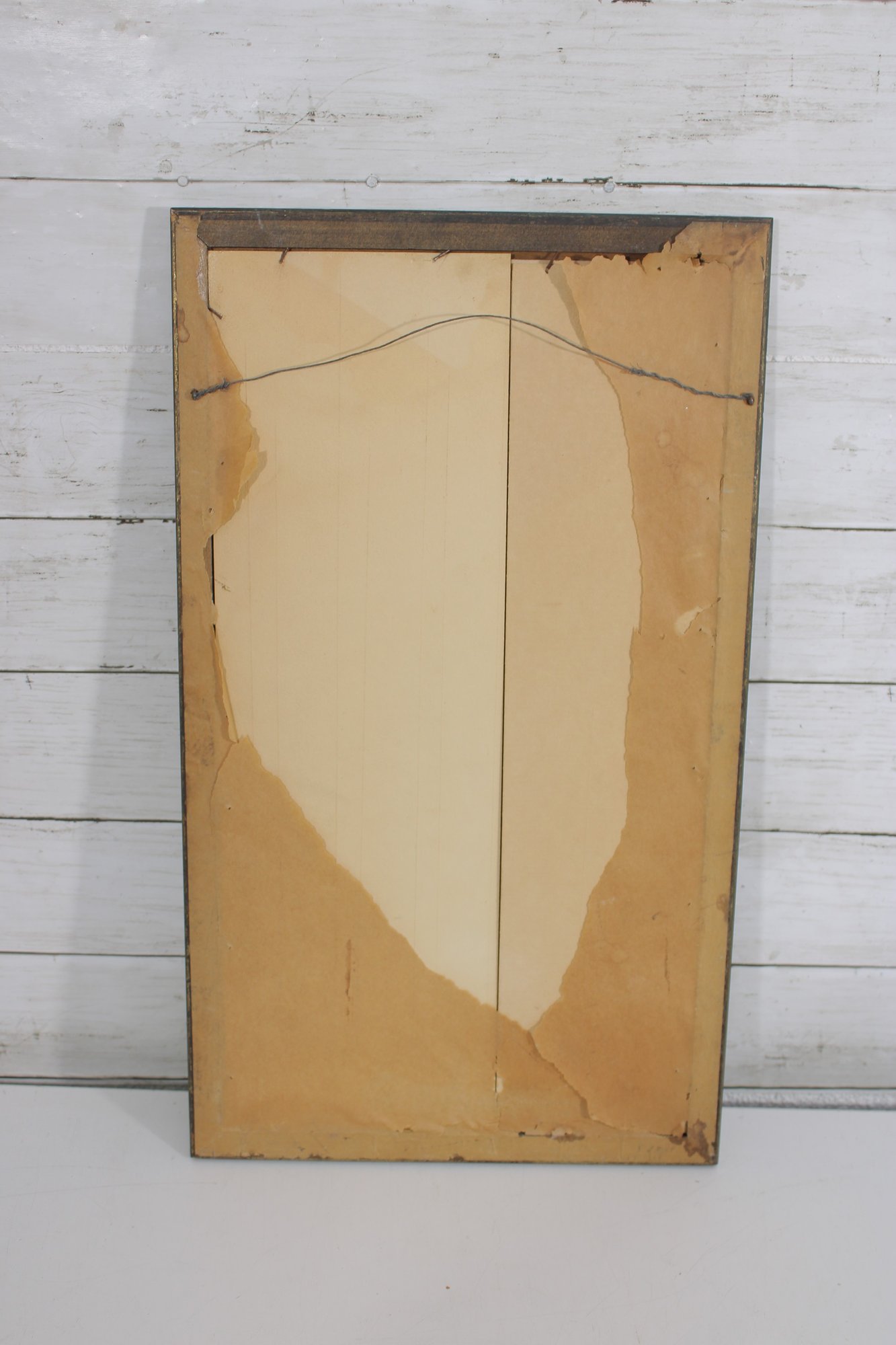 The vertical format enhances the dramatic presence of the figure, with textured line work and a raw, graphic quality that gives the piece depth and emotional impact. The print is presented in a vintage frame with matting, ready for display.