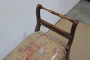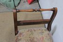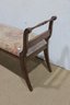 this vintage wooden bench featuring needlepoint-style upholstery, a lovely piece that combines classic craftsmanship with timeless design.
