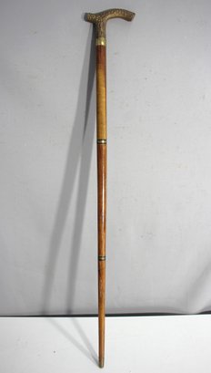 Step into elegance with this vintage wooden cane featuring a beautifully crafted brass handle. Measuring 35 inches in length, this walking stick is both a functional accessory and a collectible piece of art. The detailed brass handle and refined wooden shaft make it a standout addition to any collection or a sophisticated walking aid.