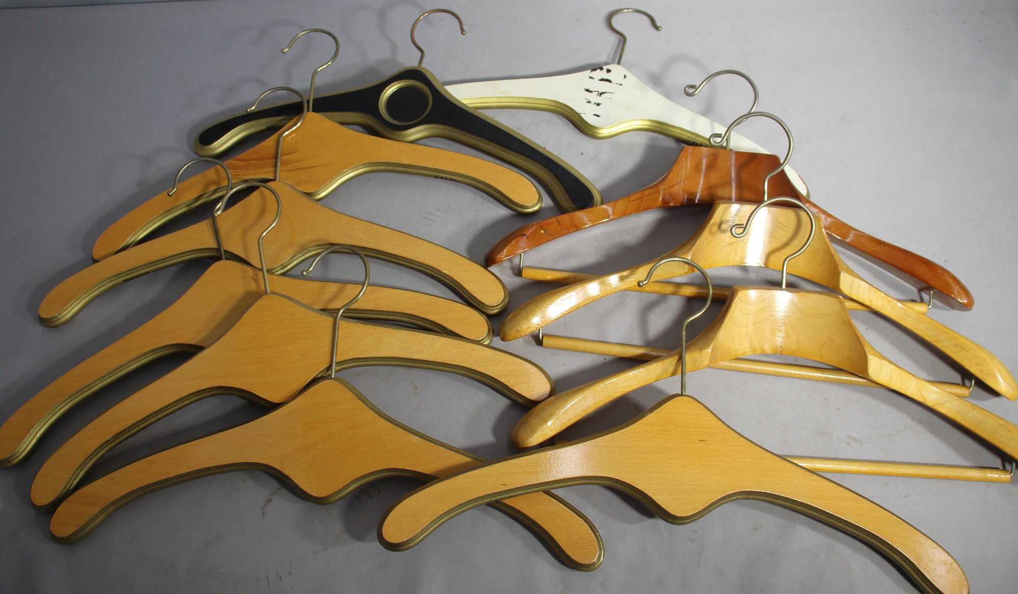 Vintage Wooden Clothes Hangers Collection Set Of 10