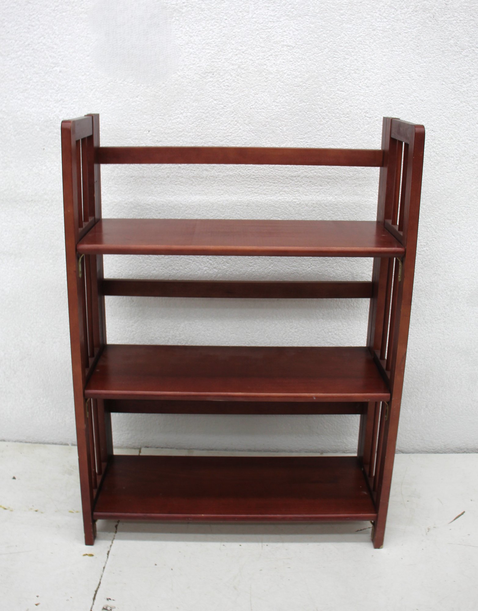 This charming wooden folding bookcase is both functional and stylish, with a rich wood finish and a compact, foldable design. Featuring three spacious shelves, it’s ideal for holding books, decorative items, or collectibles. The sides have a classic open design, adding an elegant touch and enhancing its visual appeal.