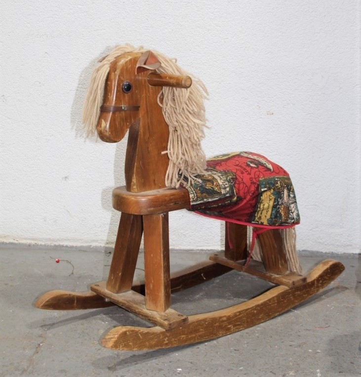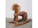 Vintage Wooden Rocking Horse With Fabric Saddle/Blanket And Yarn Mane And Tail