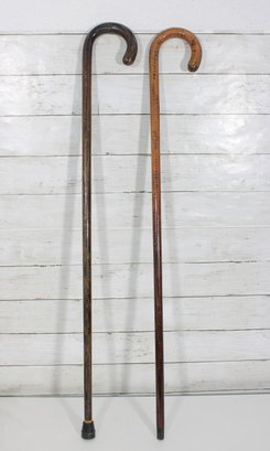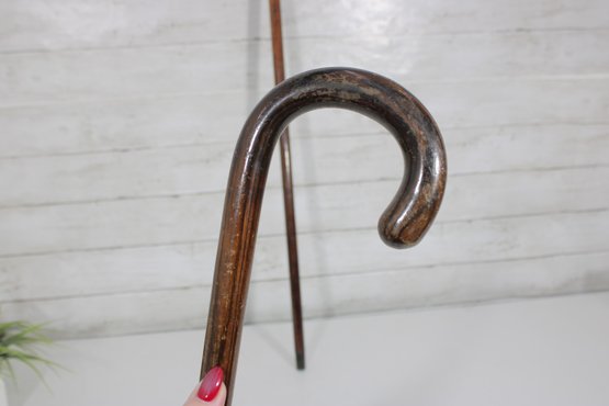 Vintage Wooden Walking Canes Curved Handle Wood Canes 36" (Pair)