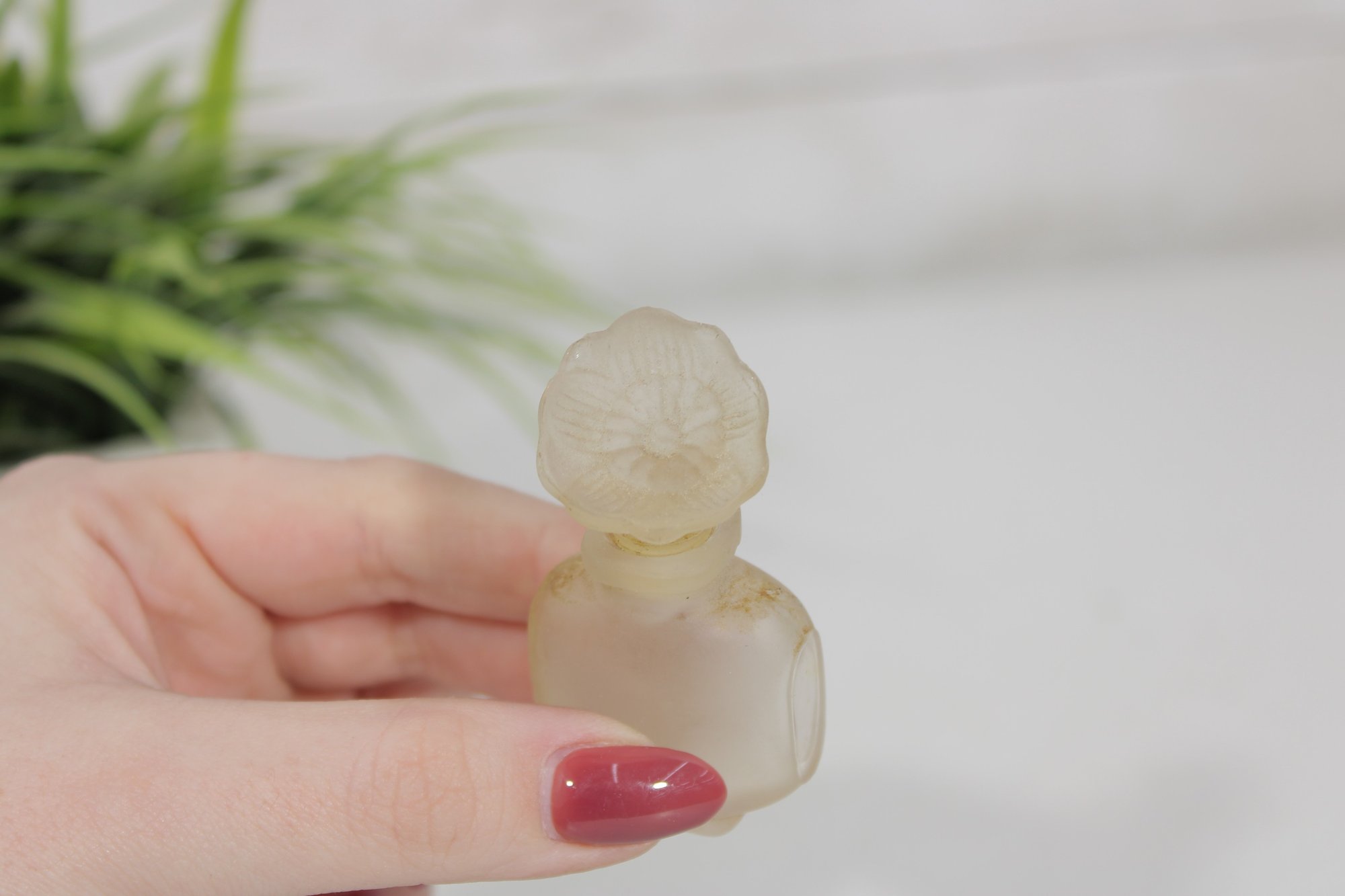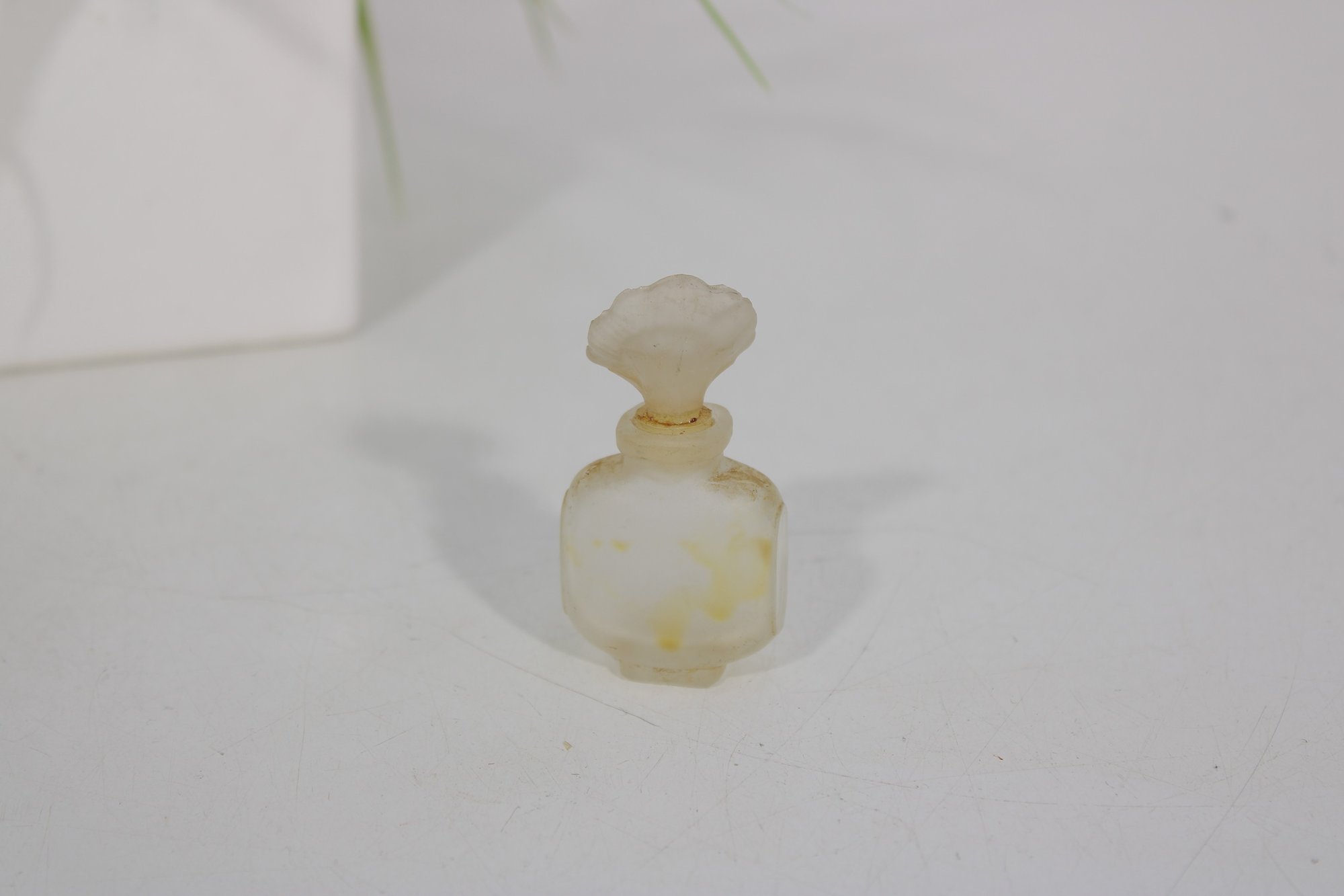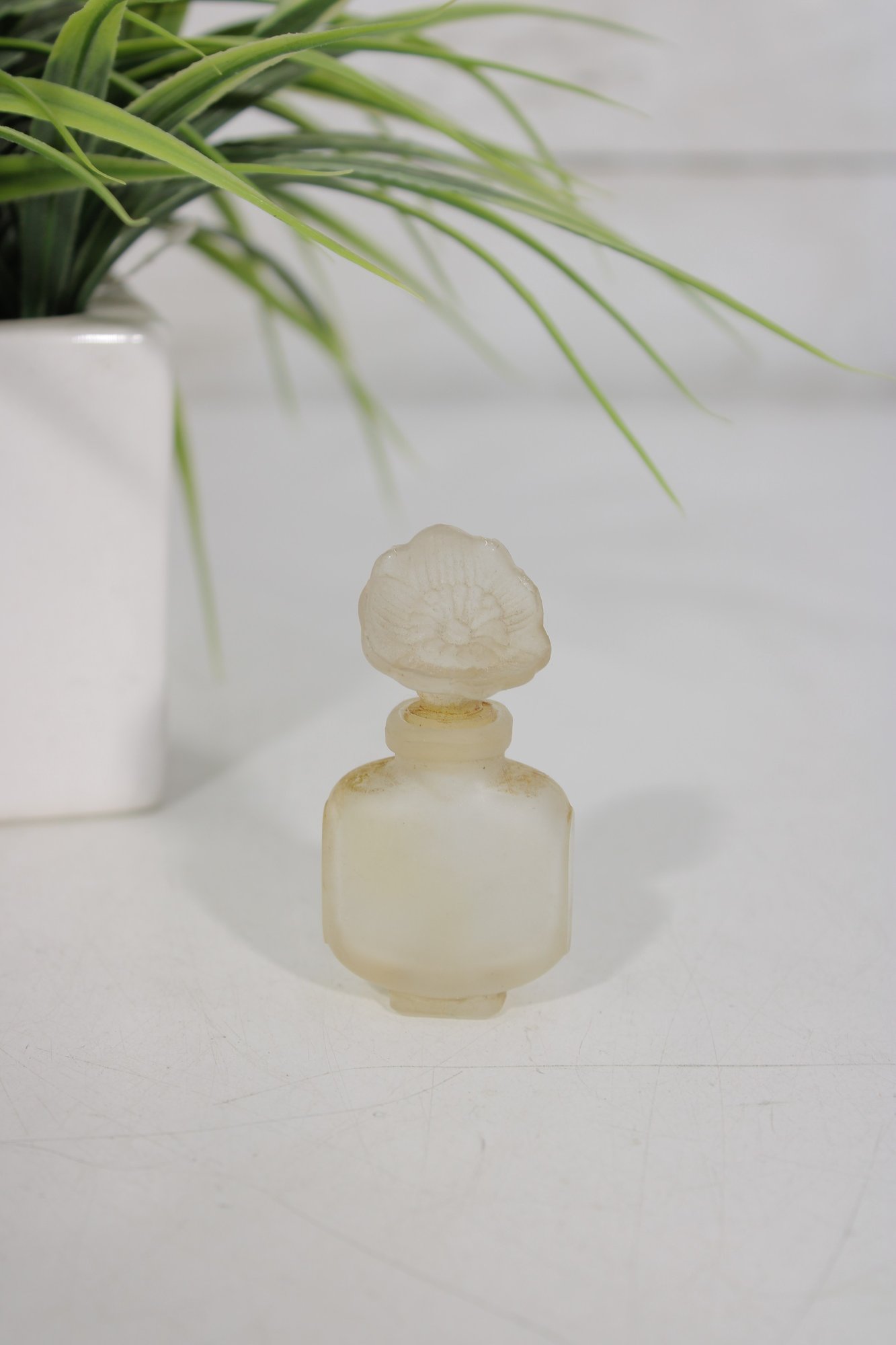 This small collectible bottle features the iconic Youth-Dew shape with a frosted finish and matching frosted floral stopper. A wonderful piece for miniature perfume collectors and vintage Estée Lauder enthusiasts.