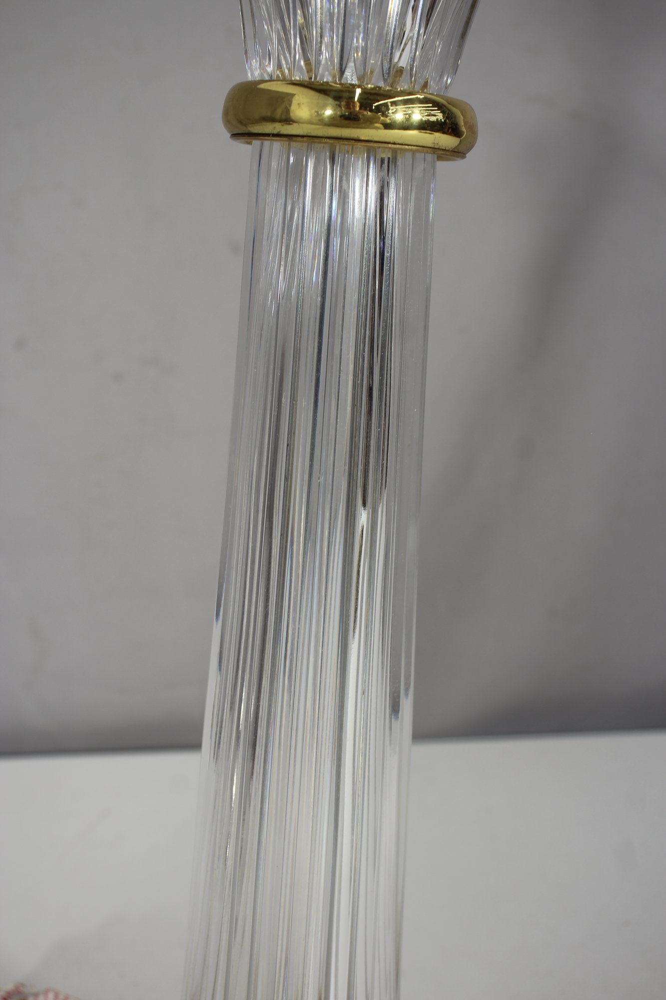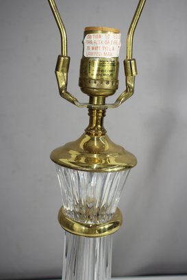 This stunning 27” Waterford Crystal table lamp showcases a timeless blend of cut crystal and brass accents, offering a touch of elegance to any room. A beautiful collector’s item, perfect for traditional and modern décor styles alike. Base & Hardware: Brass-finished base and accents, showing natural patina from age