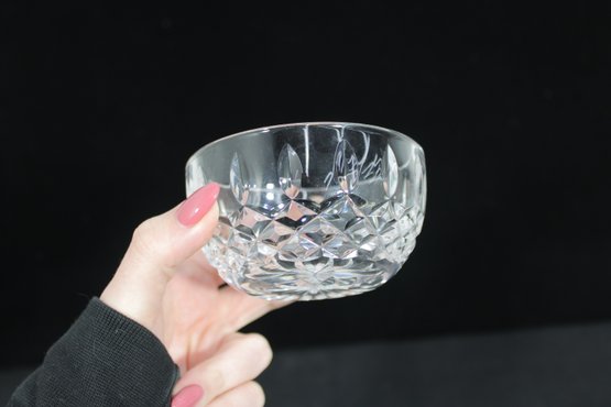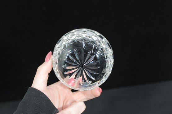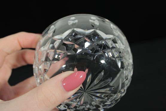Waterford crystal lidded sugar bowl, beautifully crafted with the brand’s signature brilliant cut pattern. The bowl features deep diamond and fan cuts that reflect light brilliantly, creating a classic and luxurious look.