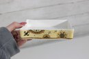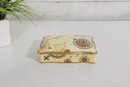 Measuring approximately 5.5 inches by 4.5 inches, this lidded box is perfect for storing jewelry, keepsakes, or small treasures while adding a refined decorative touch to any space.