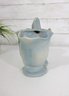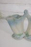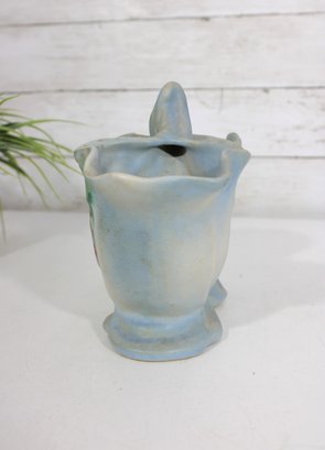 Finished in a soft matte glaze with blended tones of pale blue, cream, and green, the surface displays subtle organic variation typical of Weller art pottery. The piece is marked “Weller” on the underside, confirming authenticity.