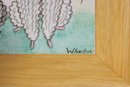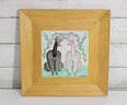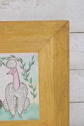 The piece has a lighthearted and decorative appeal, with soft pastel coloring and hand-drawn details that give it a warm, handmade character. Mounted in a natural wood frame, it complements the gentle tones of the artwork and is ready for display.