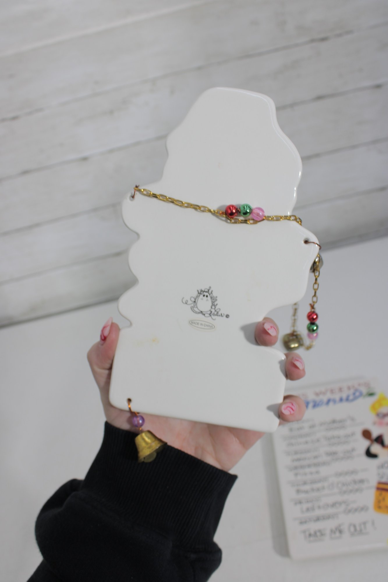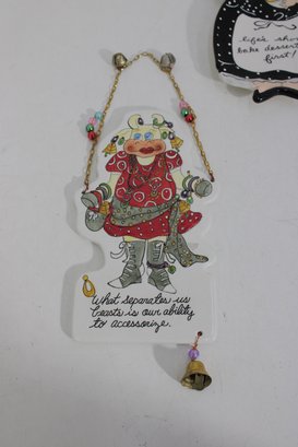 Hanging wall plaque with a playful baker character and bell accent