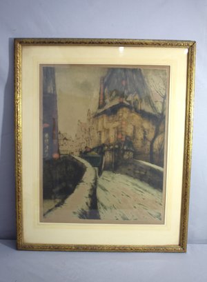 The piece is graced with the artist's signature in the lower left, hinting at the thoughtful hand behind this creation. Framed elegantly in a classic, ornate gold frame that enhances the artwork's vintage appeal, this painting is ready to become the focal point of any room.