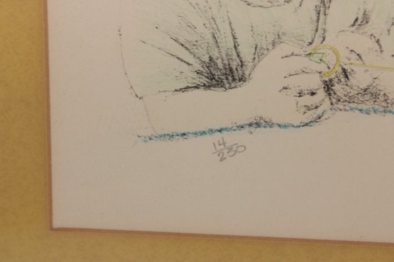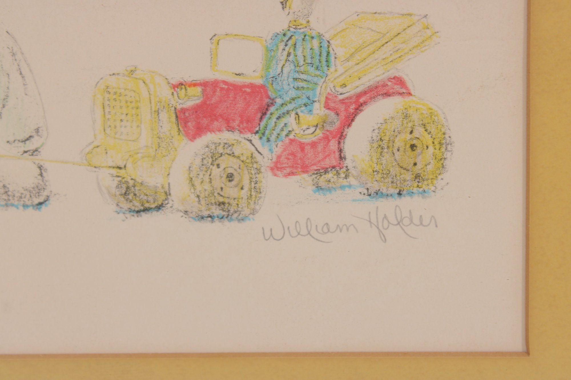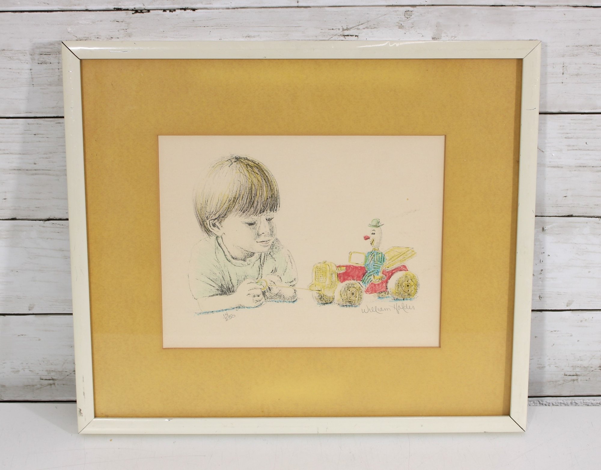 This piece is pencil signed “William Holder” in the lower right and numbered (appears to be 36/250) in the lower margin, indicating a limited edition print. The artwork is matted in a rich gold-tone mat and housed in a light-colored frame