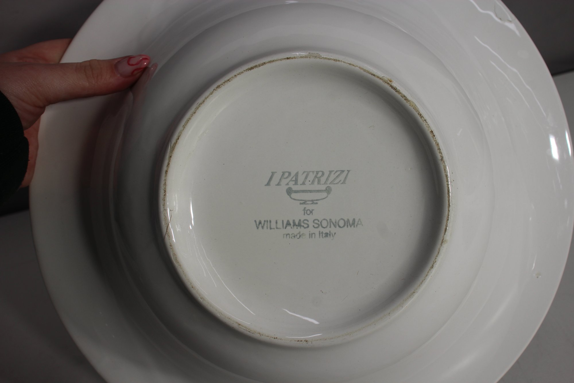 Williams Sonoma I Patrizi Serving Bowl – Made in Italy, classic white design with a wide rim (Stamped on the underside).