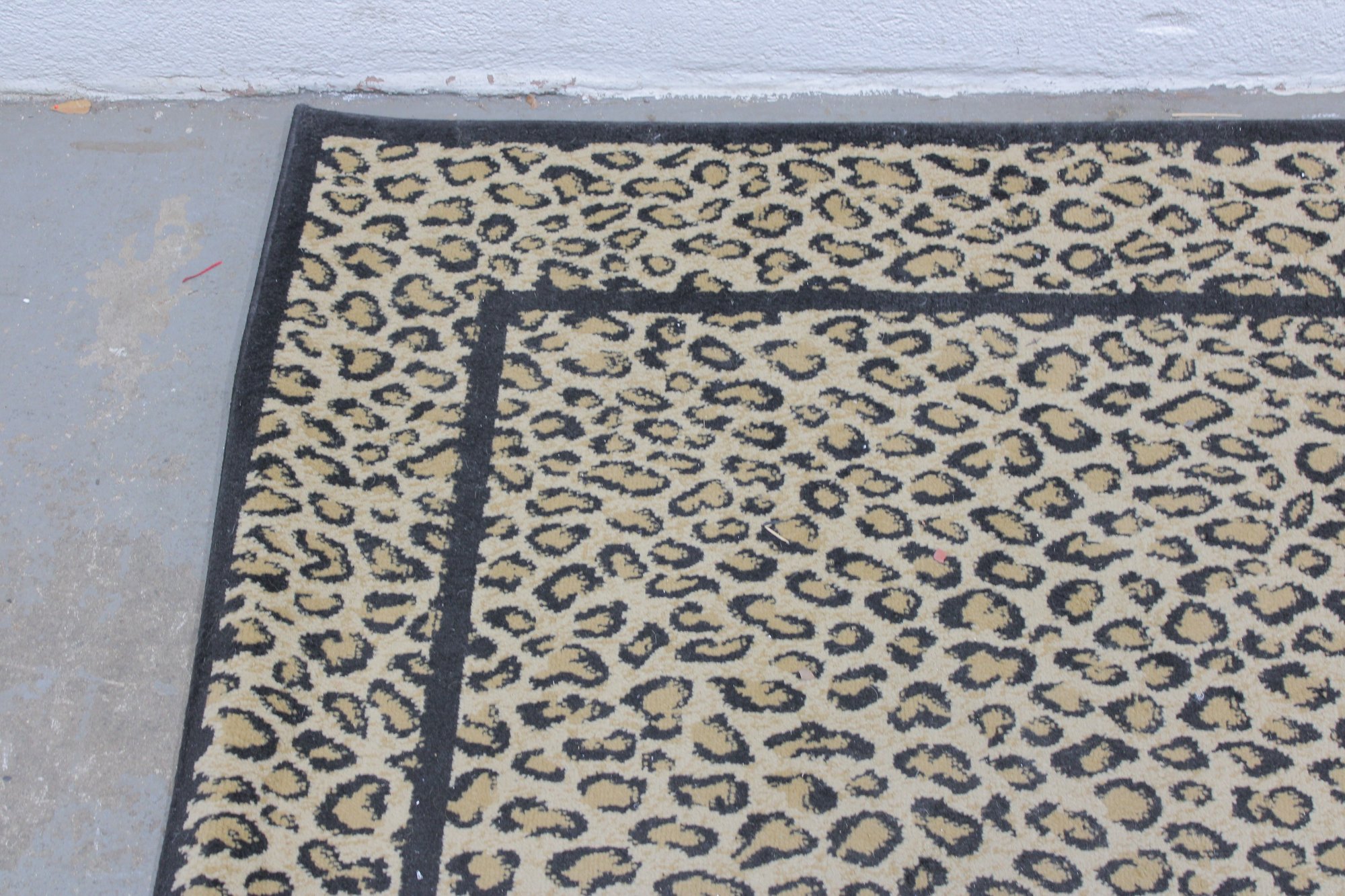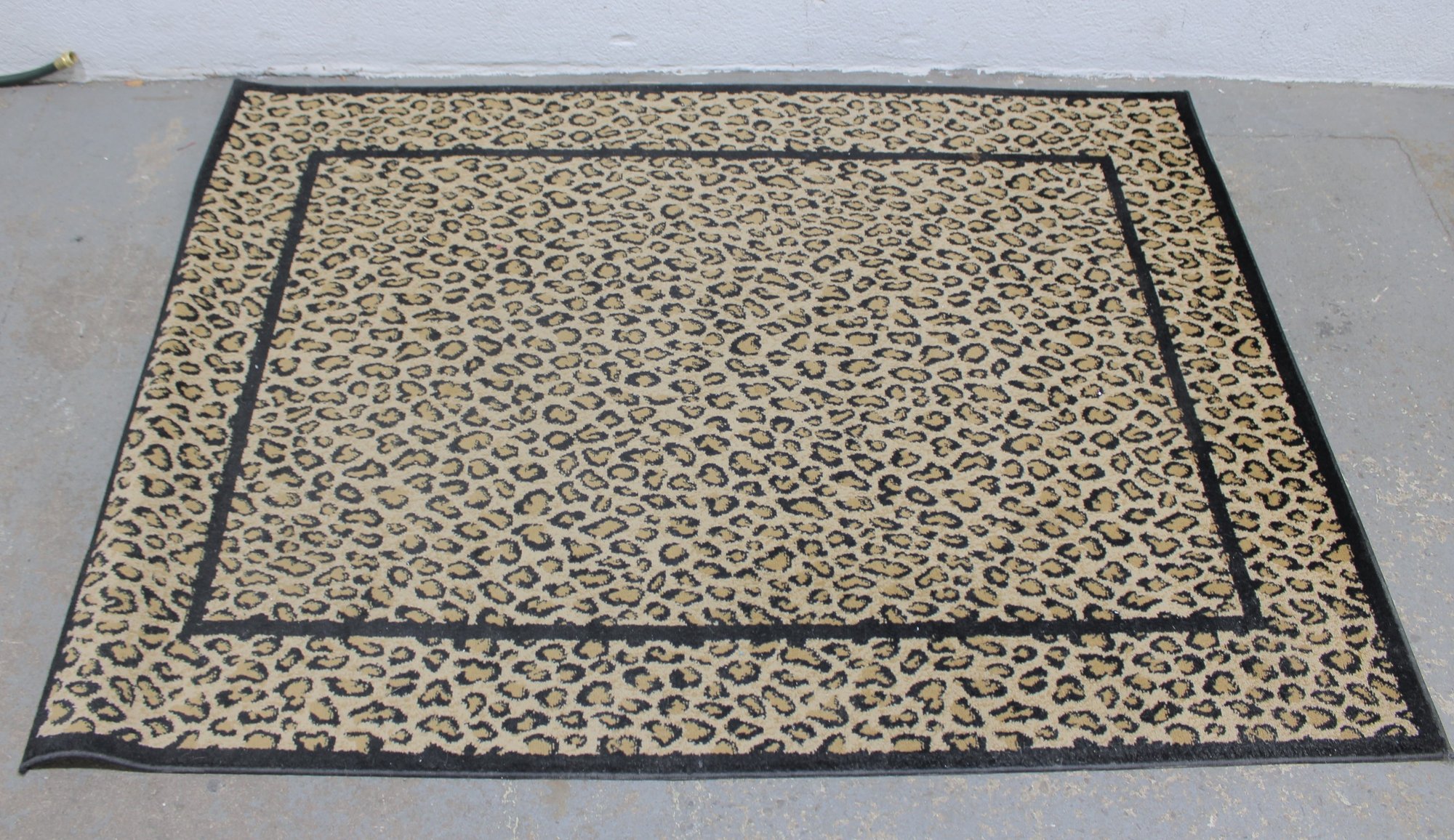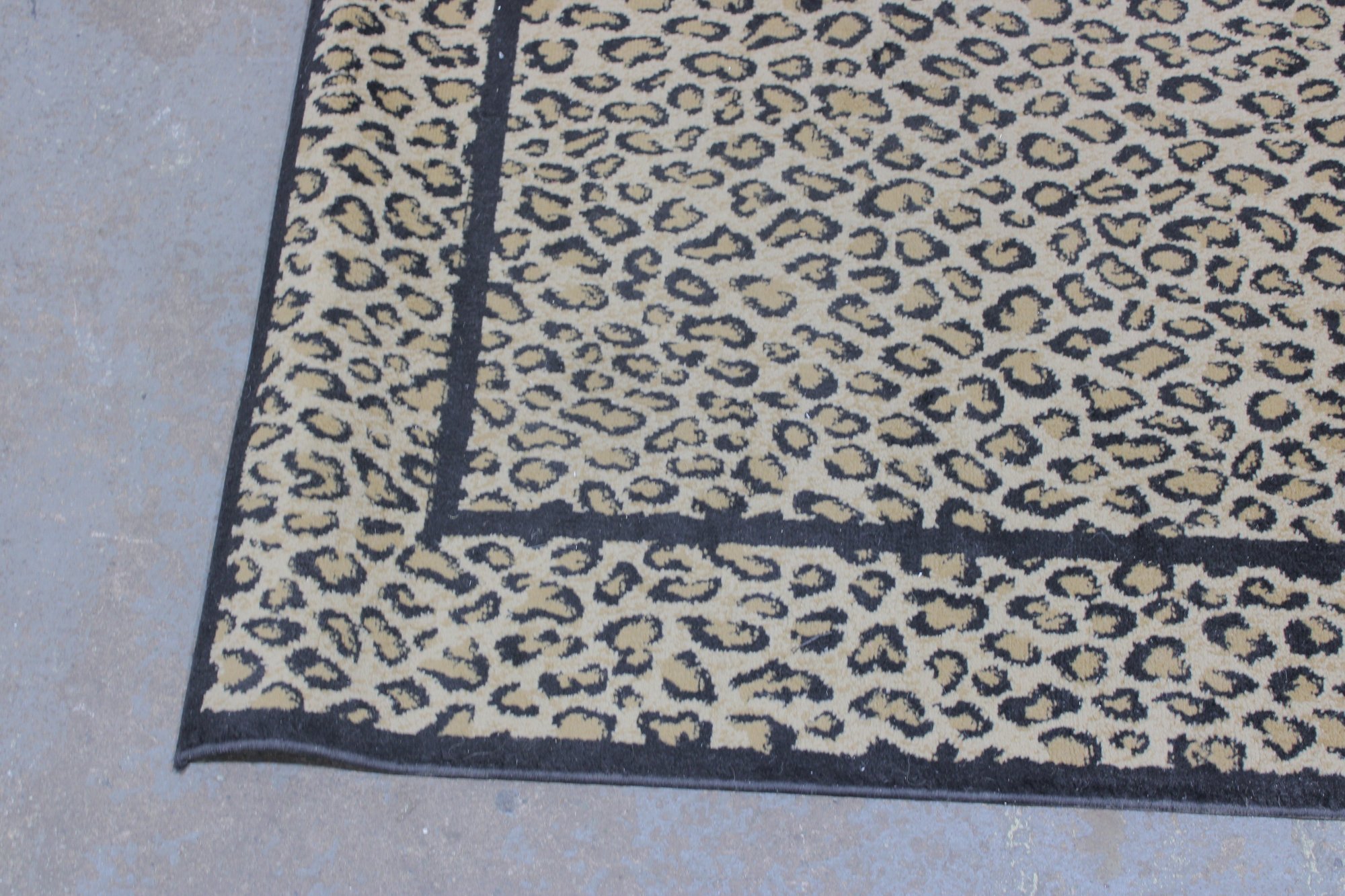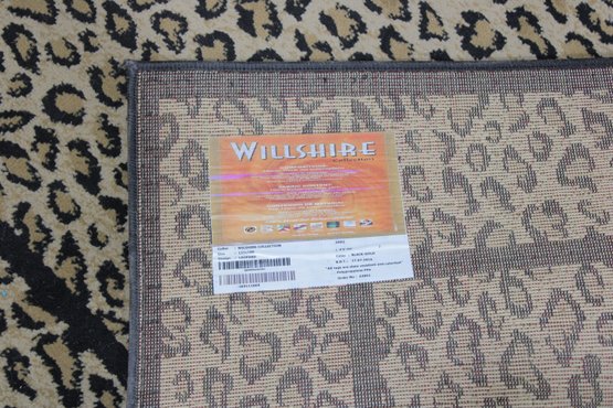 Stylish Willshire Collection area rug featuring an all-over leopard print design in rich gold and black tones. The bold animal pattern is framed with a coordinating border, giving the rug a finished, designer look while keeping the overall palette neutral and easy to place.