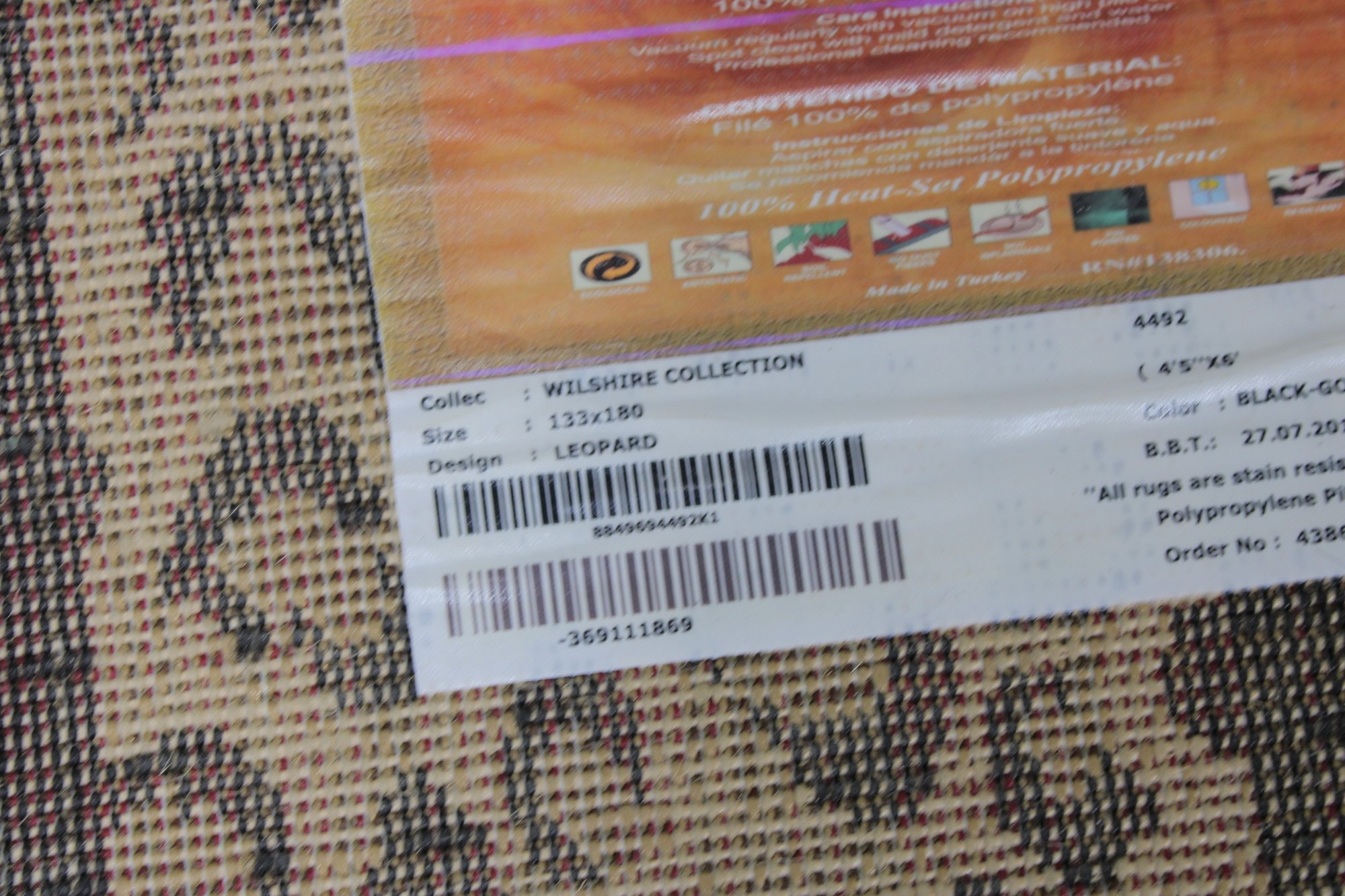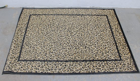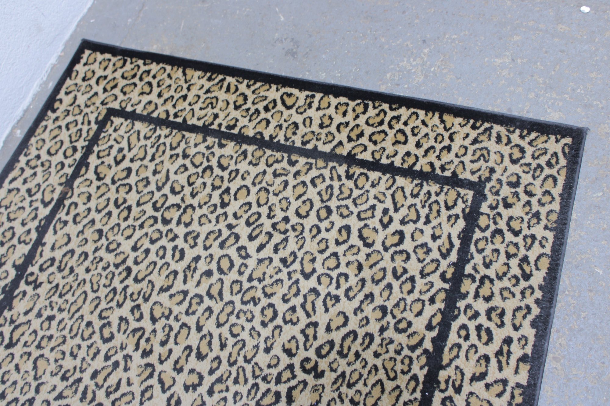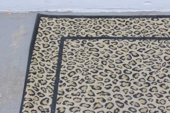 Stylish Willshire Collection area rug featuring an all-over leopard print design in rich gold and black tones. The bold animal pattern is framed with a coordinating border, giving the rug a finished, designer look while keeping the overall palette neutral and easy to place.