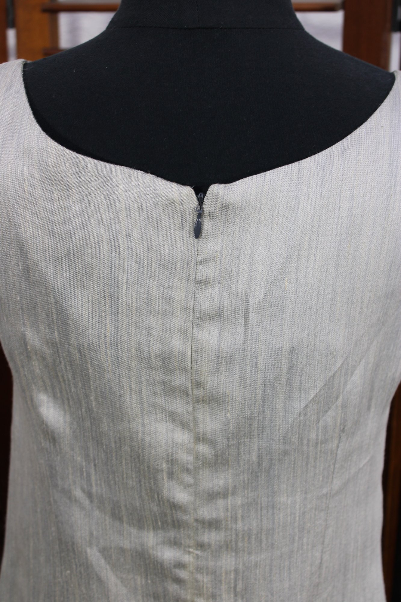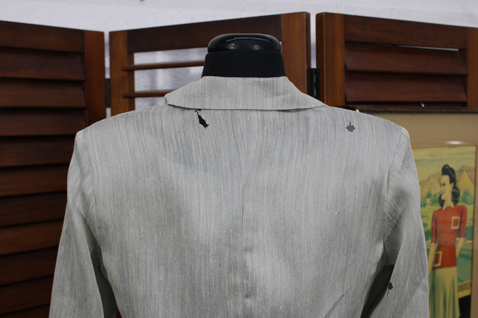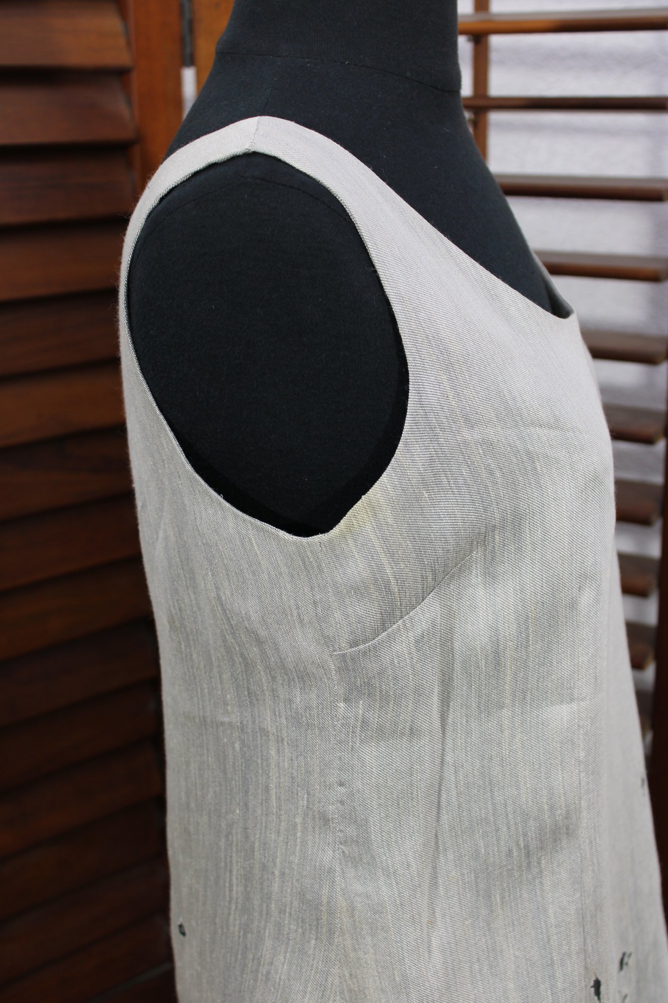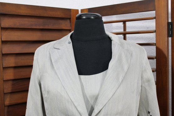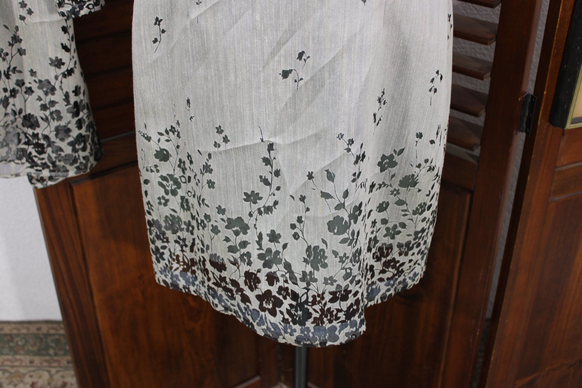 a lovely women’s two-piece outfit featuring a sleeveless dress with a matching sheer jacket. The set is done in soft white with delicate dark floral detailing along the hem and cuffs, creating an elegant and feminine look. The dress has a simple, flattering silhouette with a back zipper, while the lightweight jacket adds coverage and style.