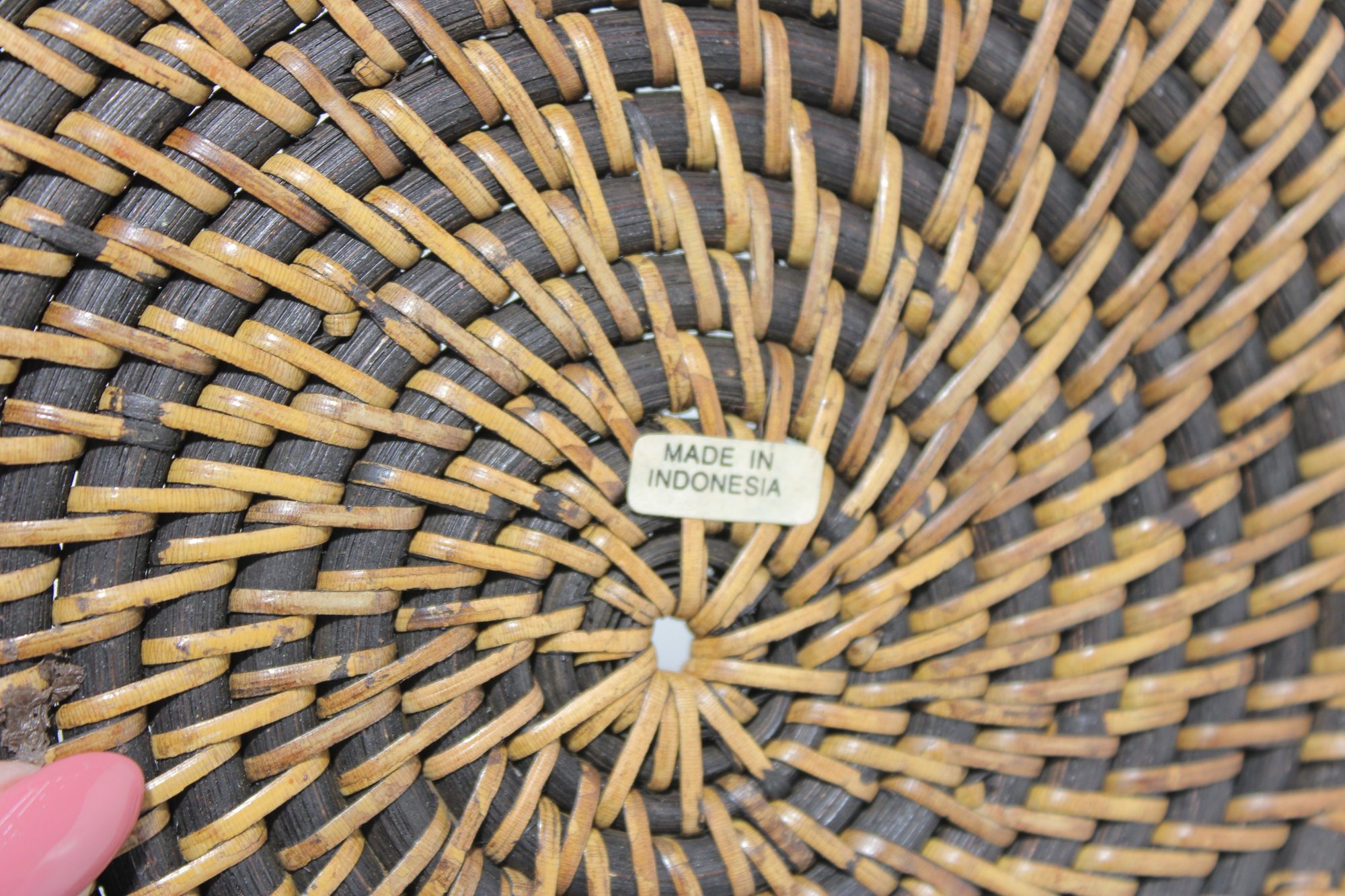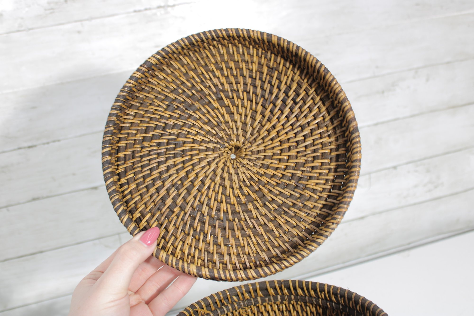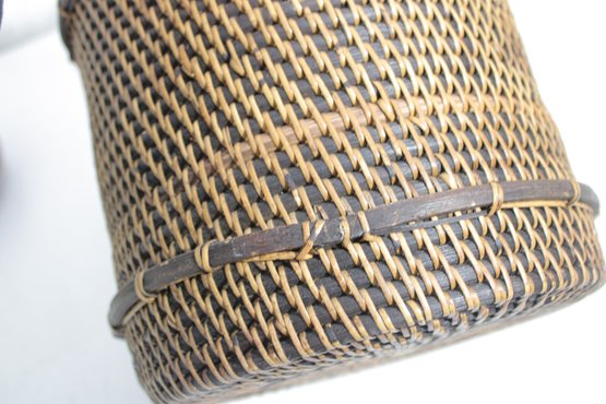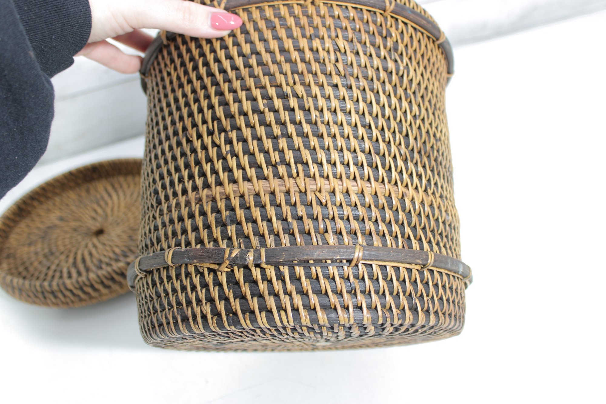 Woven Rattan Storage Basket W/ Lid Round Lidded Container Boho Decor 10.5 X 9