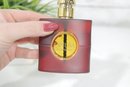 This bottle features the signature deep red lacquered design with gold-tone accents and circular center window — one of the most recognizable perfume bottle designs ever created. The luxurious presentation reflects the rich, sensual character of the fragrance inside.
