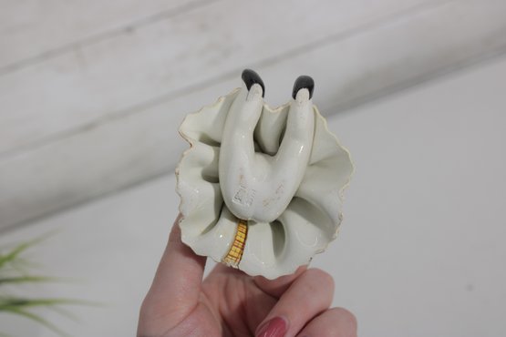 Measuring approximately 3.5 inches tall, this petite figurine captures a whimsical, vintage-inspired look that Zampiva is known for. The combination of glossy ceramic and detailed craftsmanship makes it a lovely collectible or decorative accent.