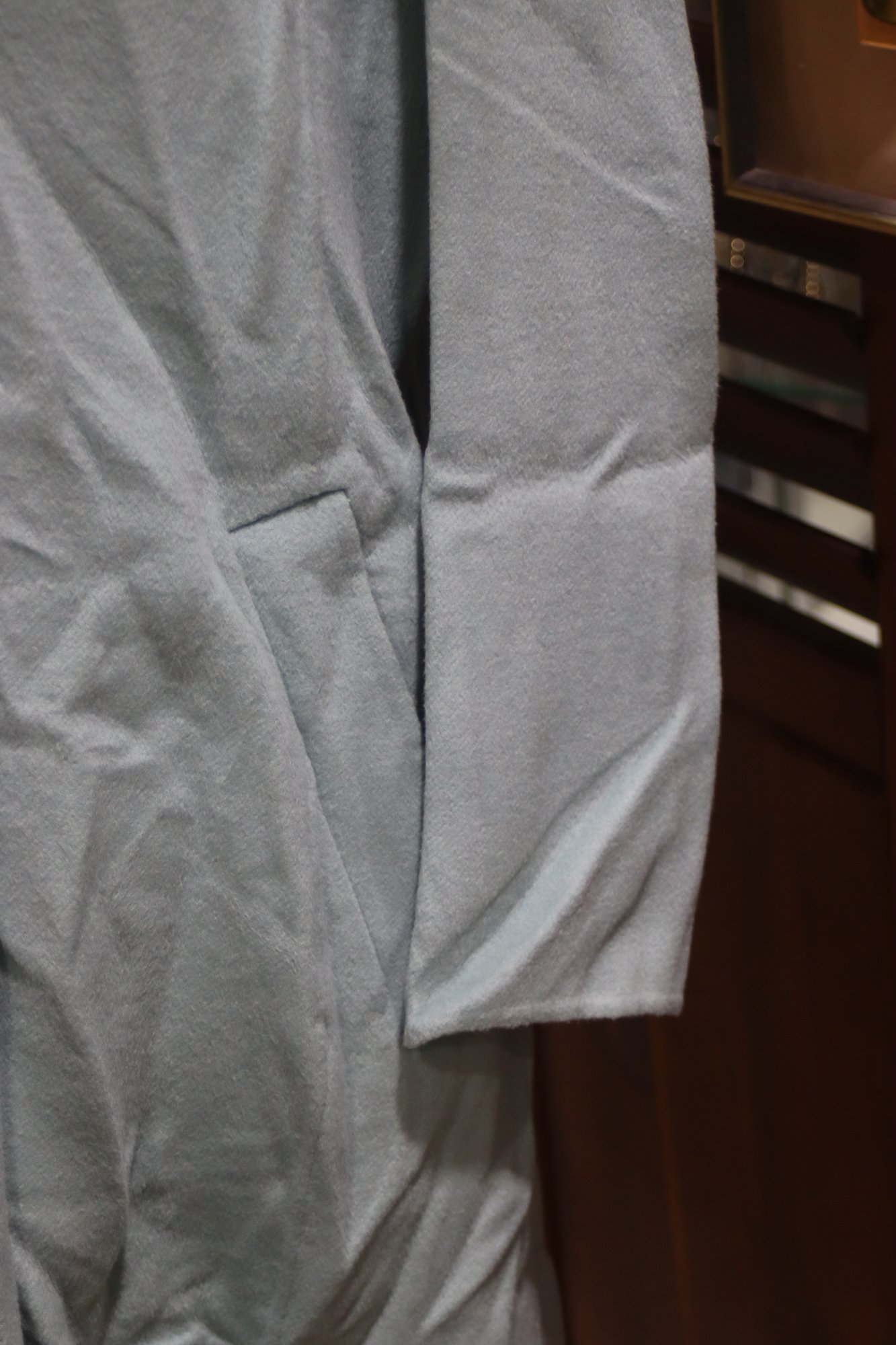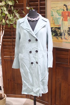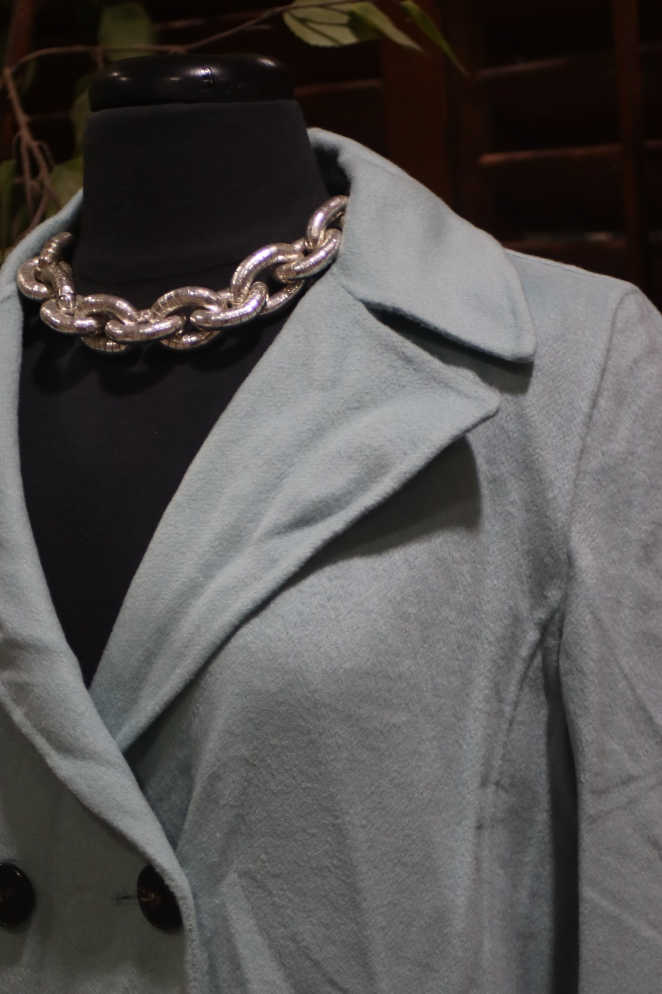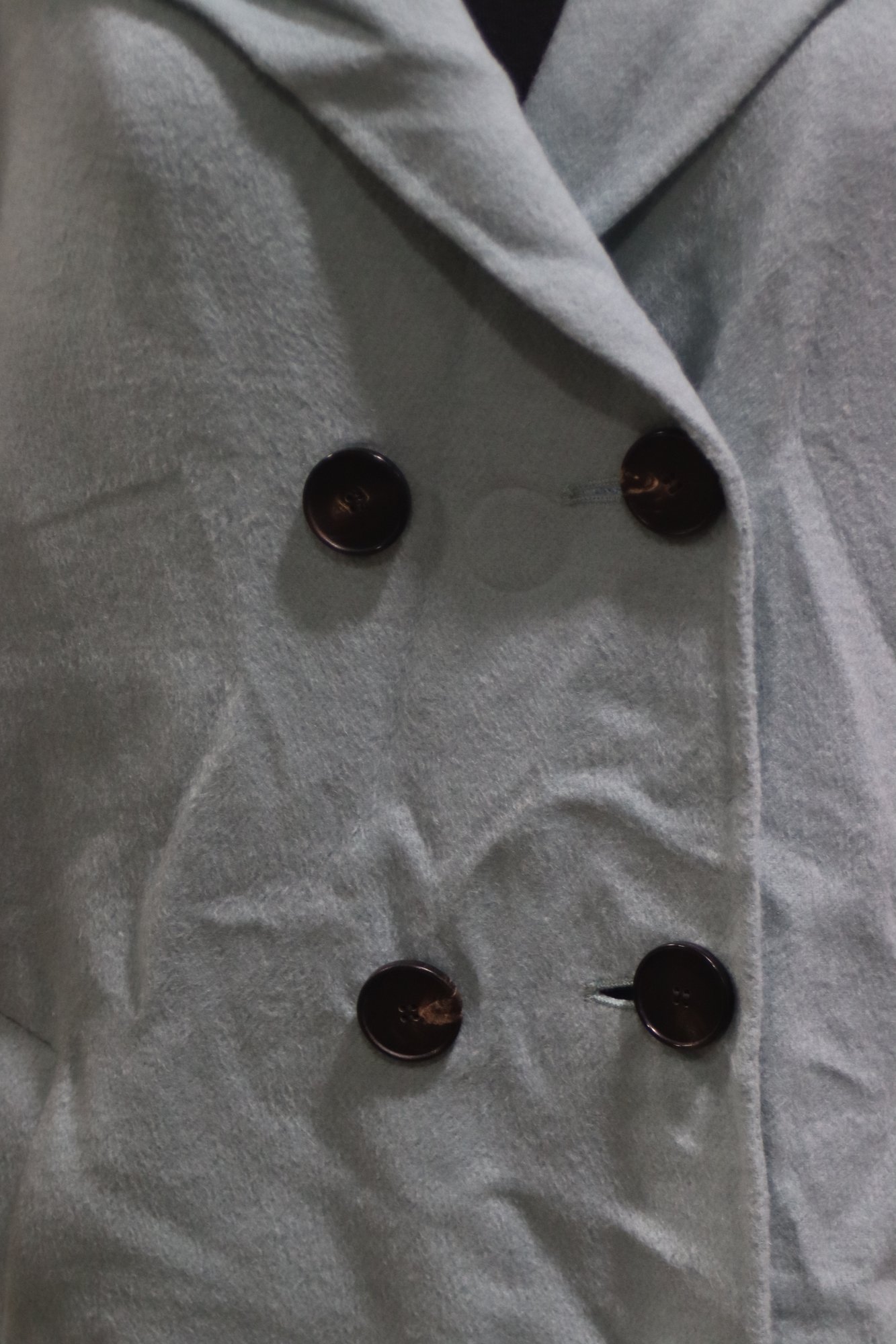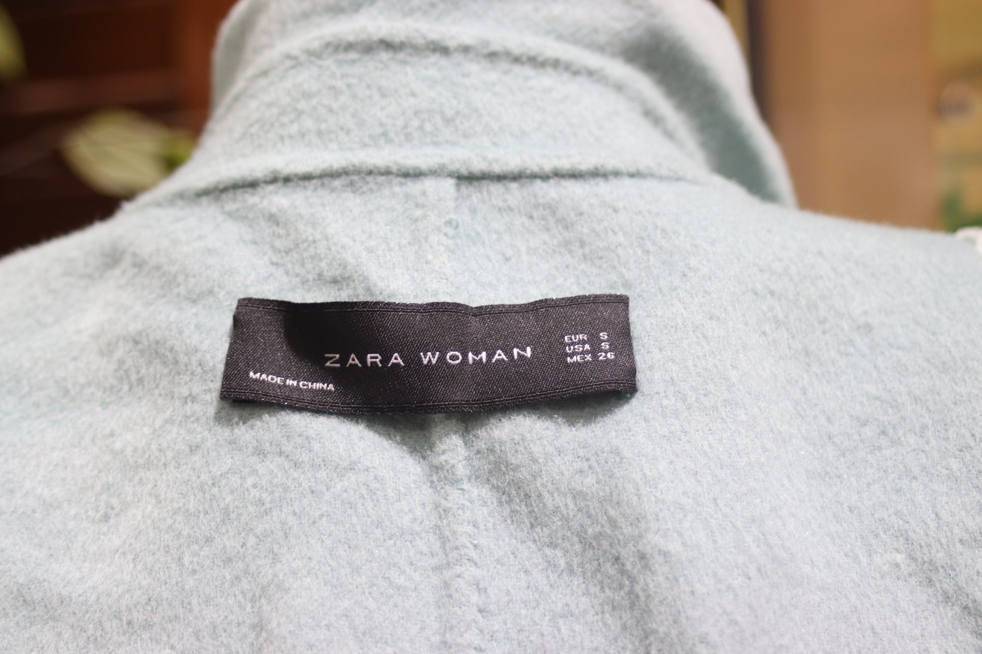 this light blue Zara Woman double-breasted coat, offering a sleek and modern look. With its soft pastel hue and tailored fit, this coat is perfect for layering over both casual and formal outfits.