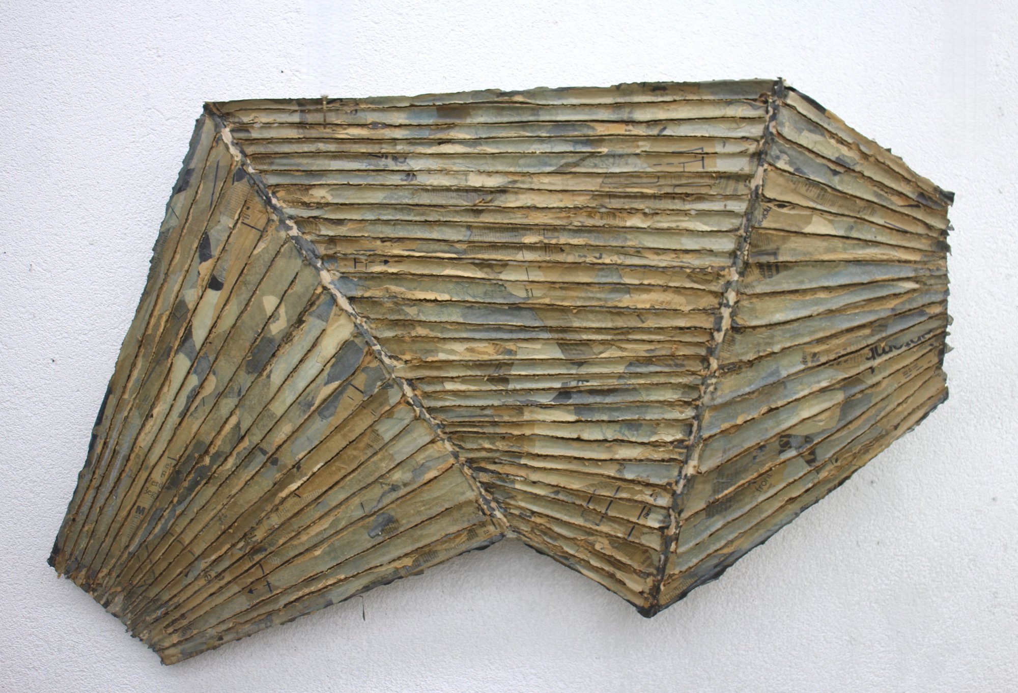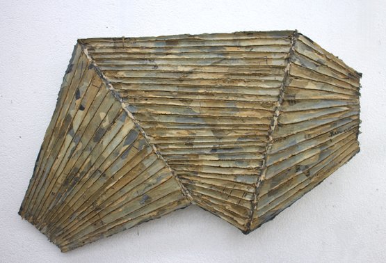 Offered here is a stunning and rare original 1981 wall sculpture by Zigi Ben-Haim, titled “Floating Wave.” This dynamic piece showcases Ben-Haim’s distinctive abstract style, combining paper gauze and pigments over a sculpted, geometric wood frame. The layered textures and rhythmic linear elements evoke a sense of movement and organic form.