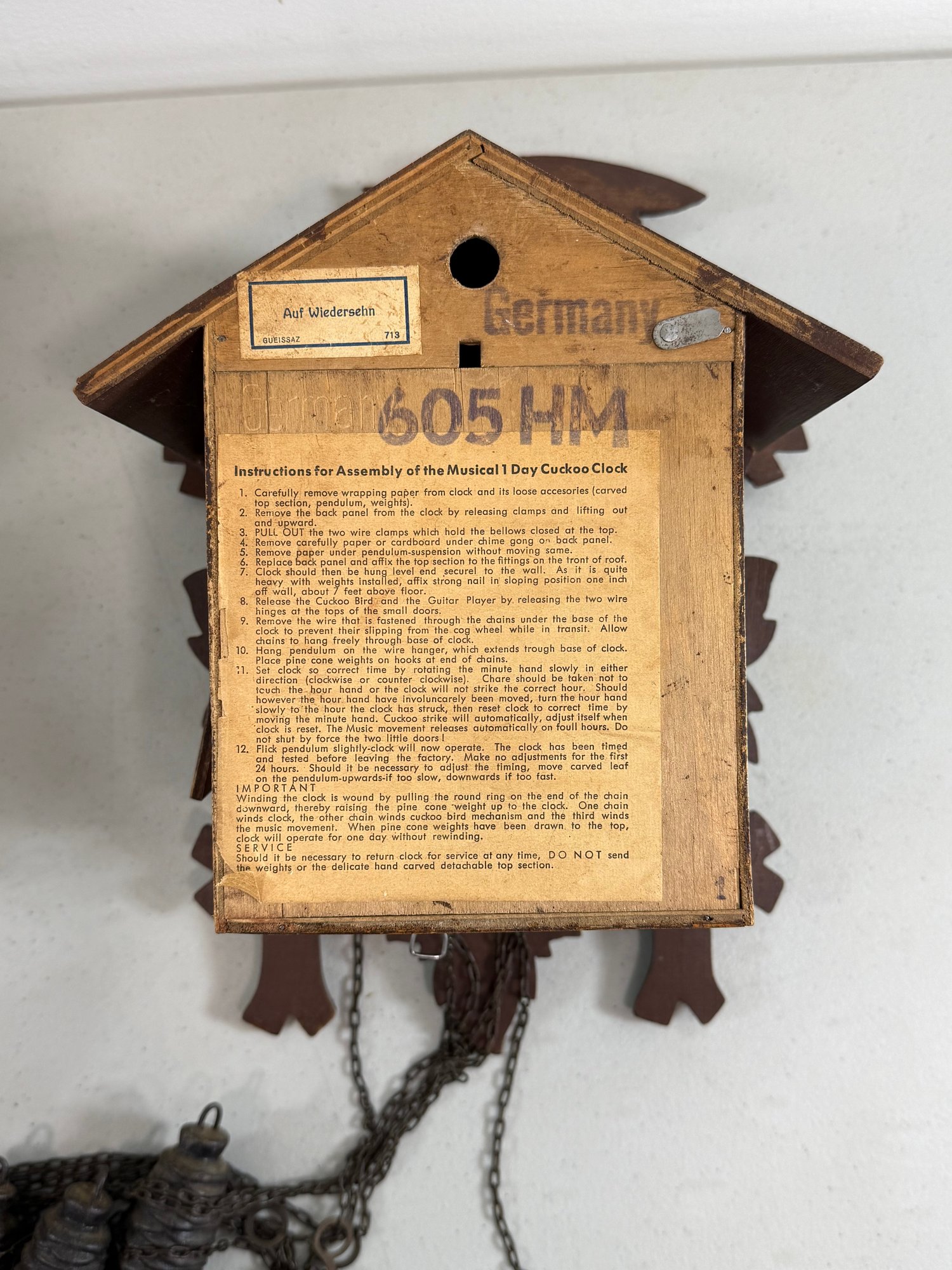 19” & 11-1/2”, one set of weights and one pendulum