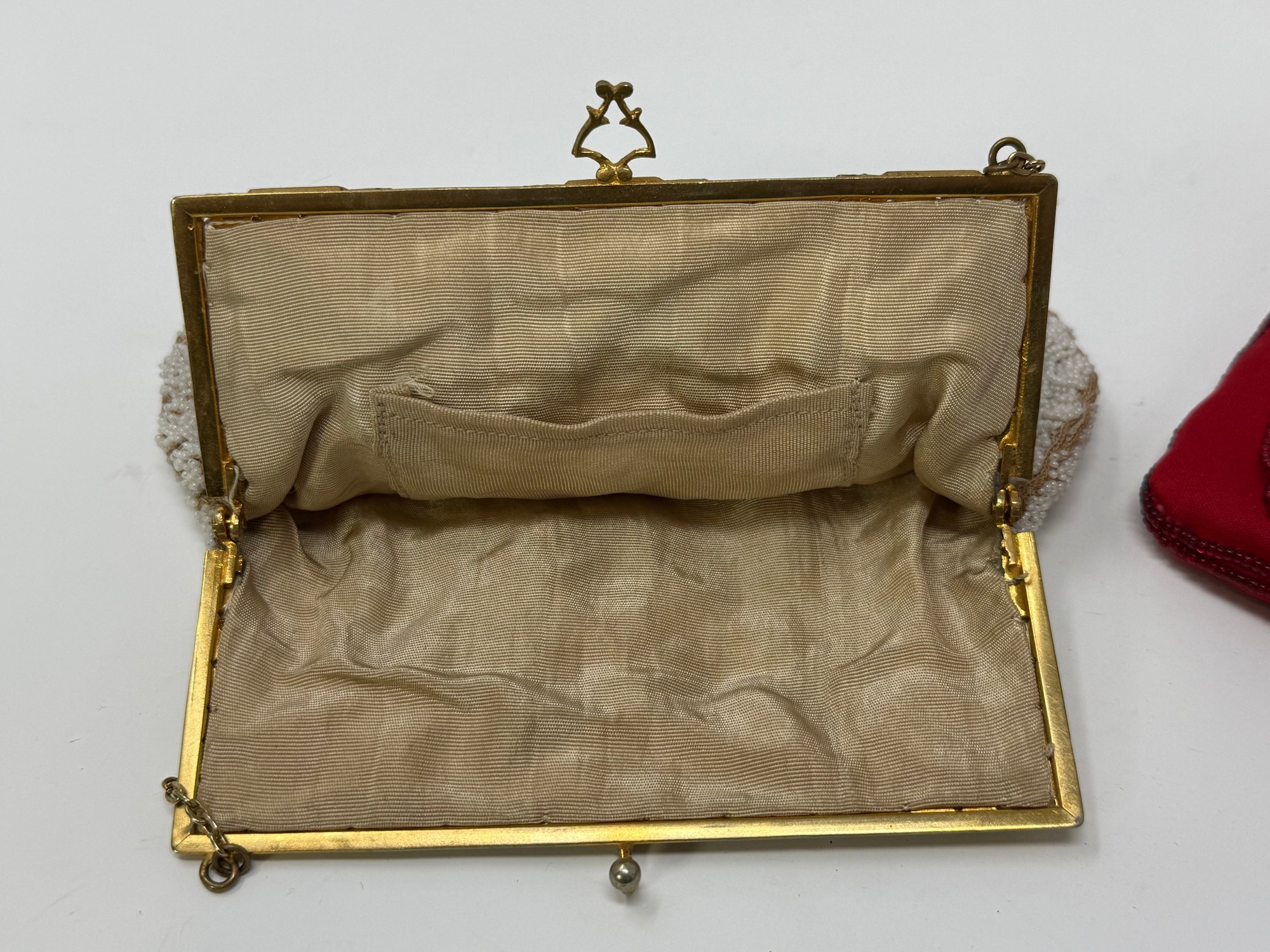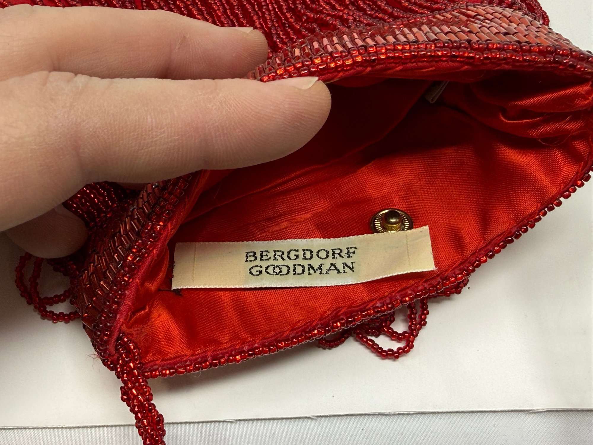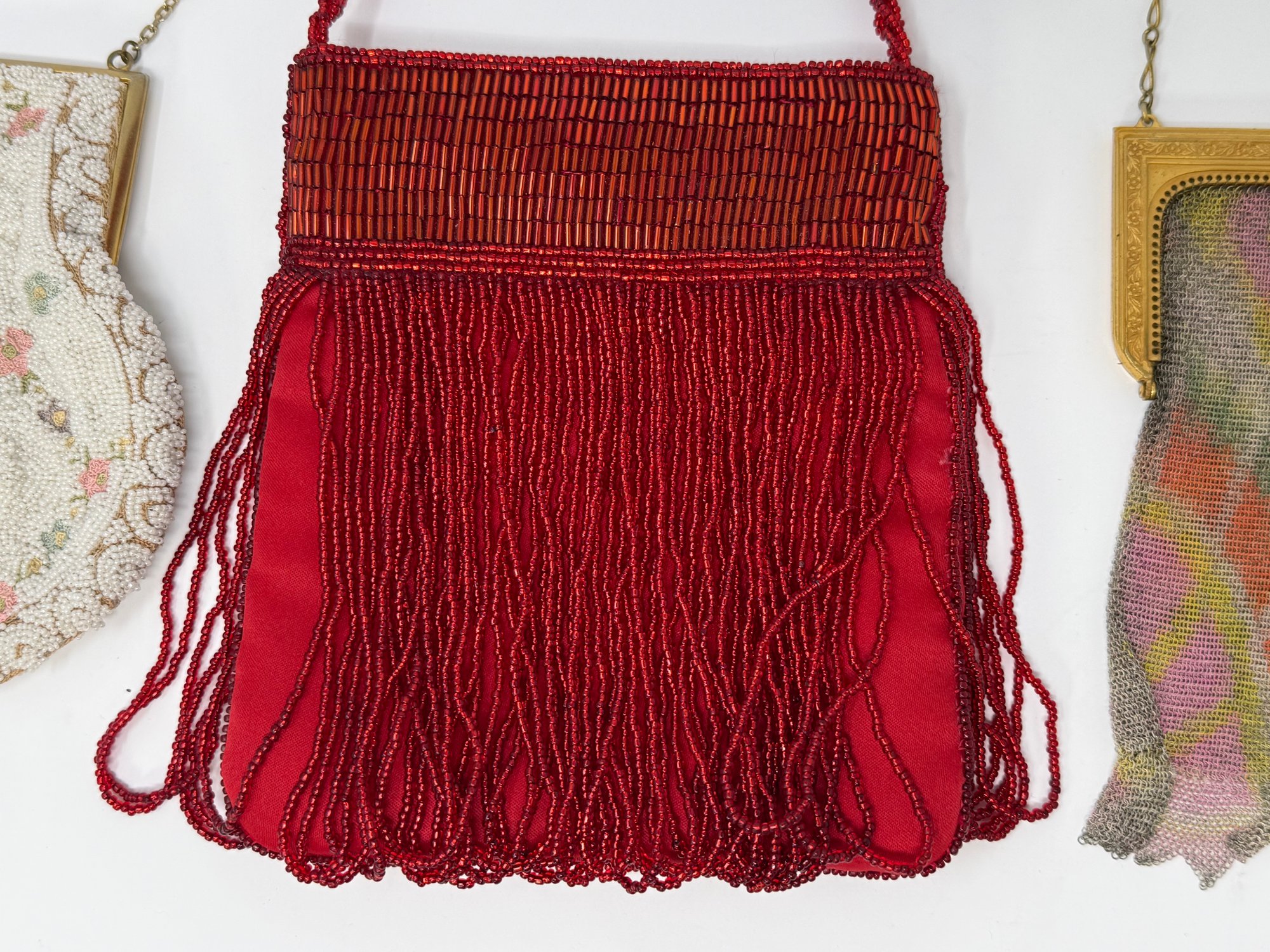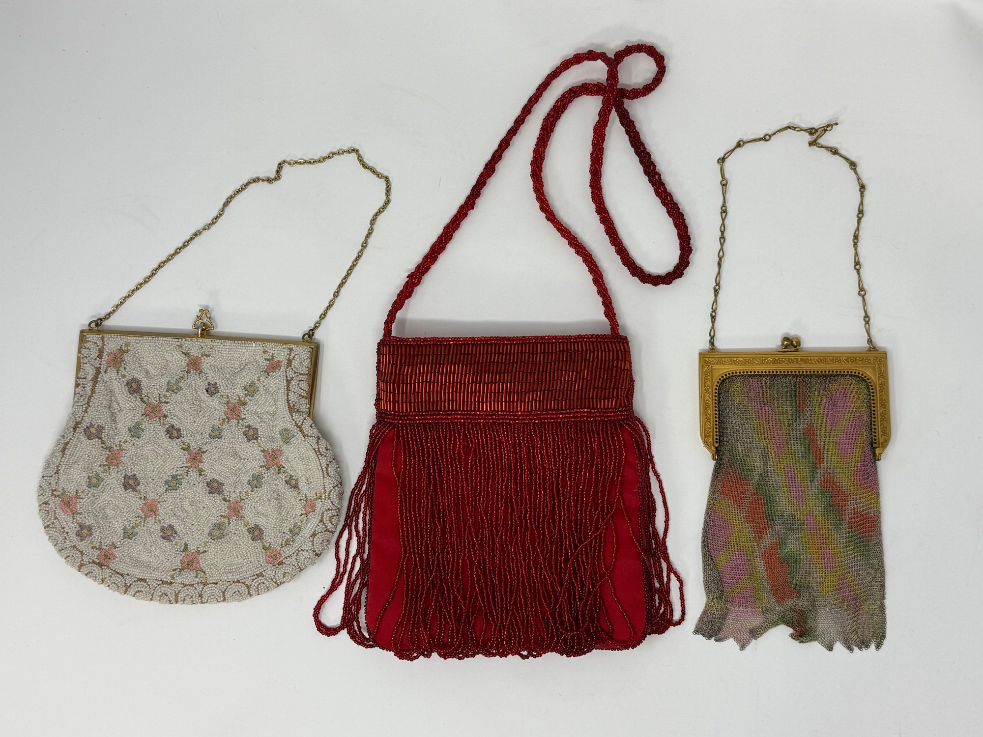 5.25", 6" & 6.25"; gold mesh by Whiting & Davis, red bead is Bergdorf Goodman