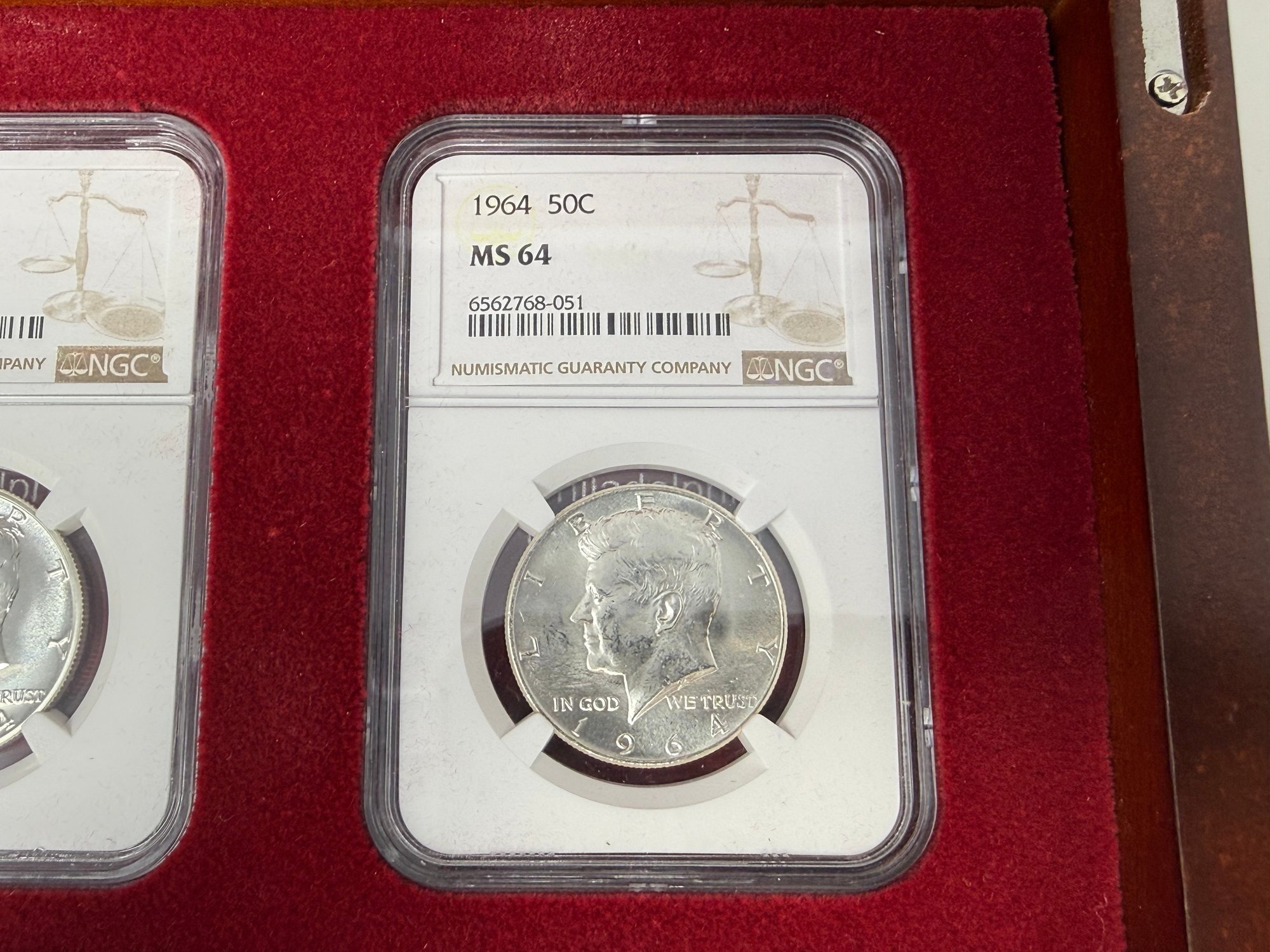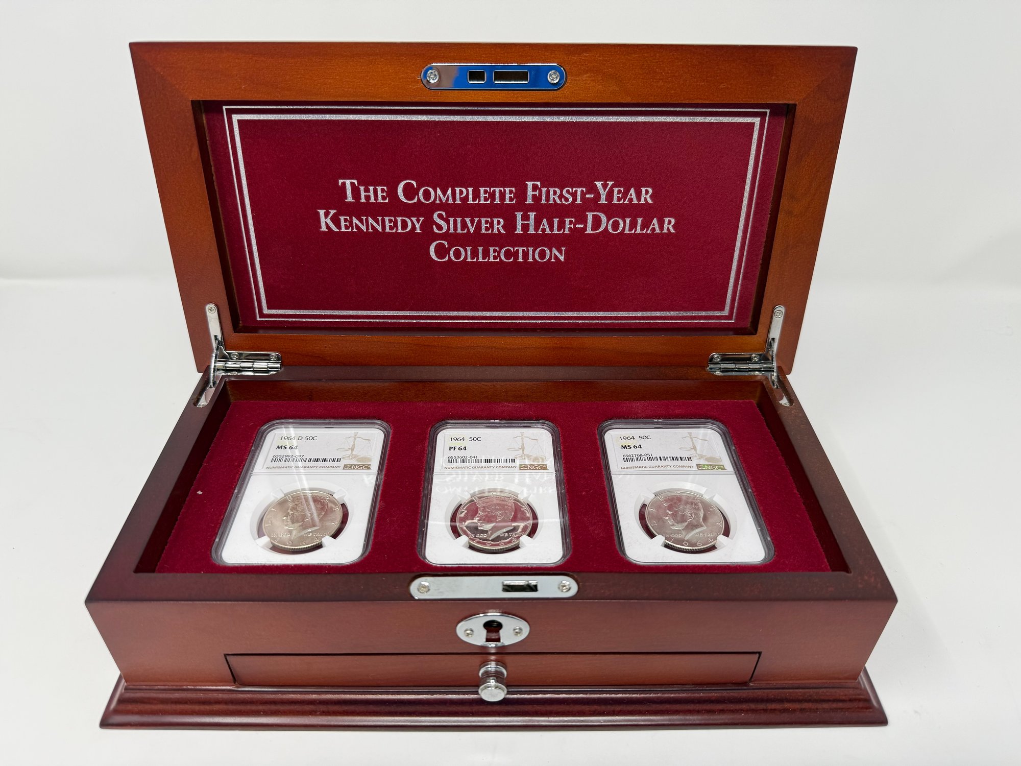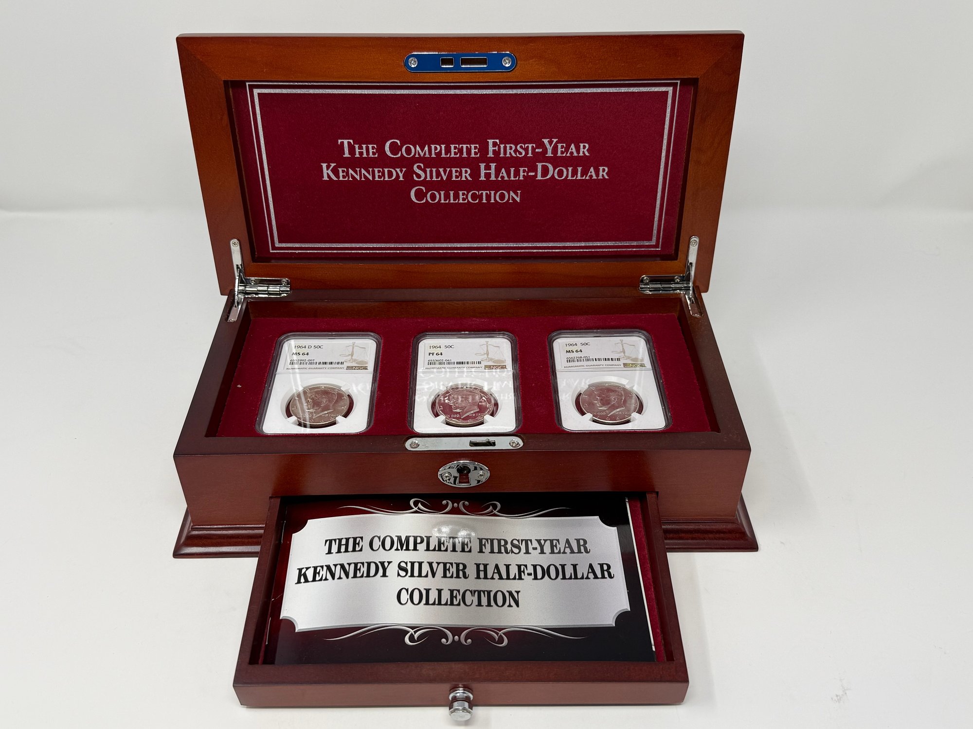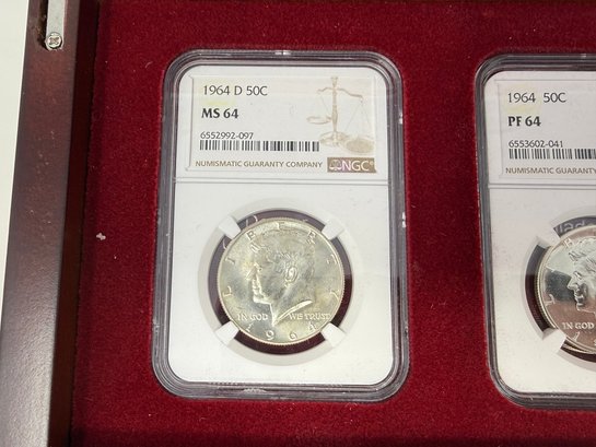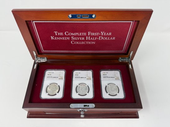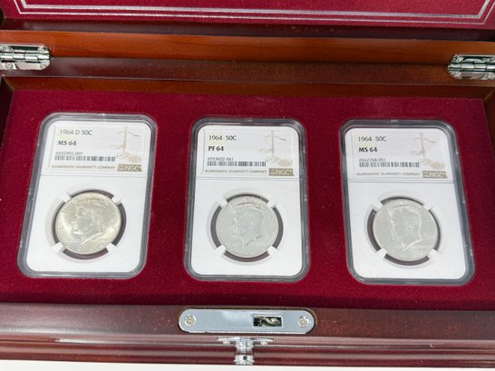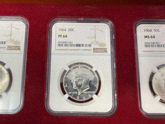 The Complete First Year Kennedy Silver Half Dollar Collection; 1964 D MS-64, 1964 Proof MS-64, 1964 Philadelphia MS-64
