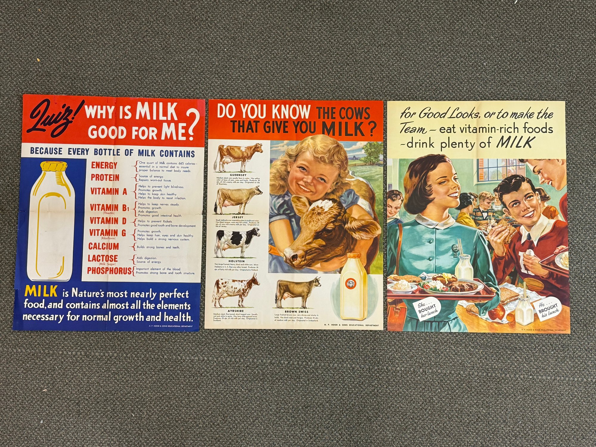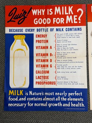 Each measures approximately 17”x22”. The posters were issued folded. Themes include Cows, Vitamins & School Lunch
