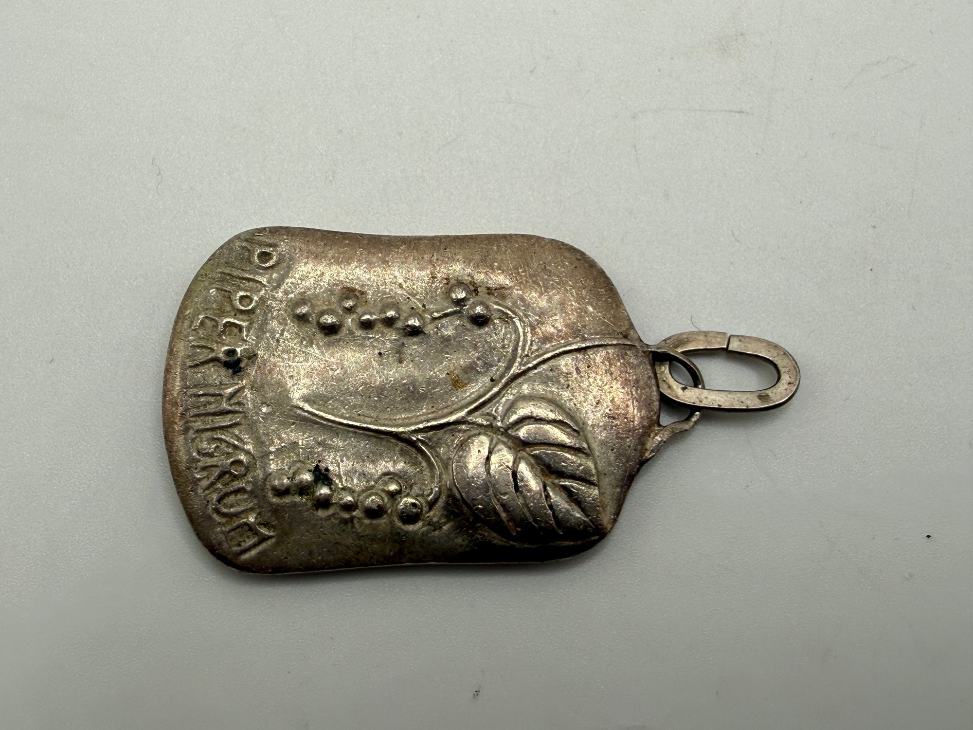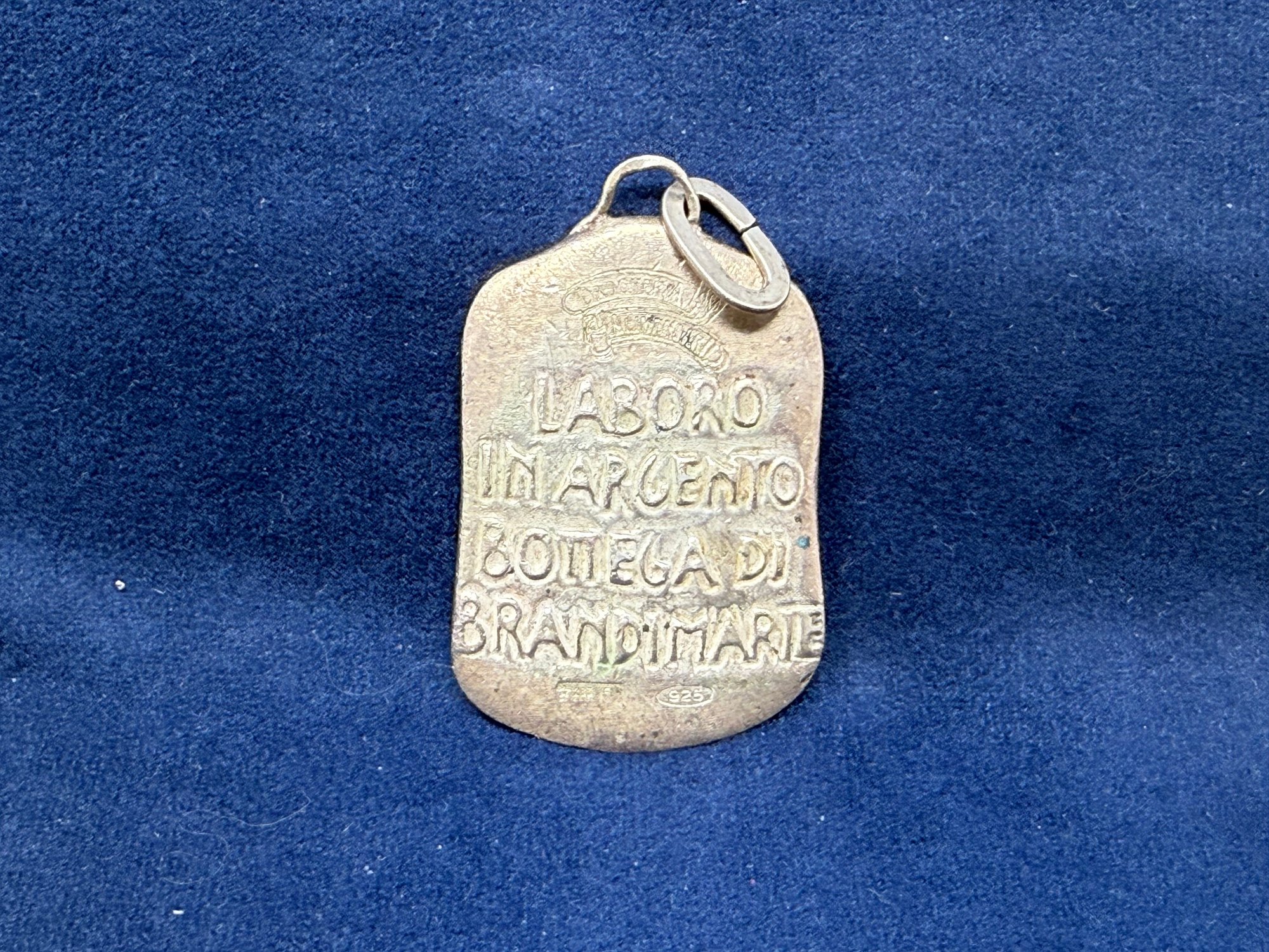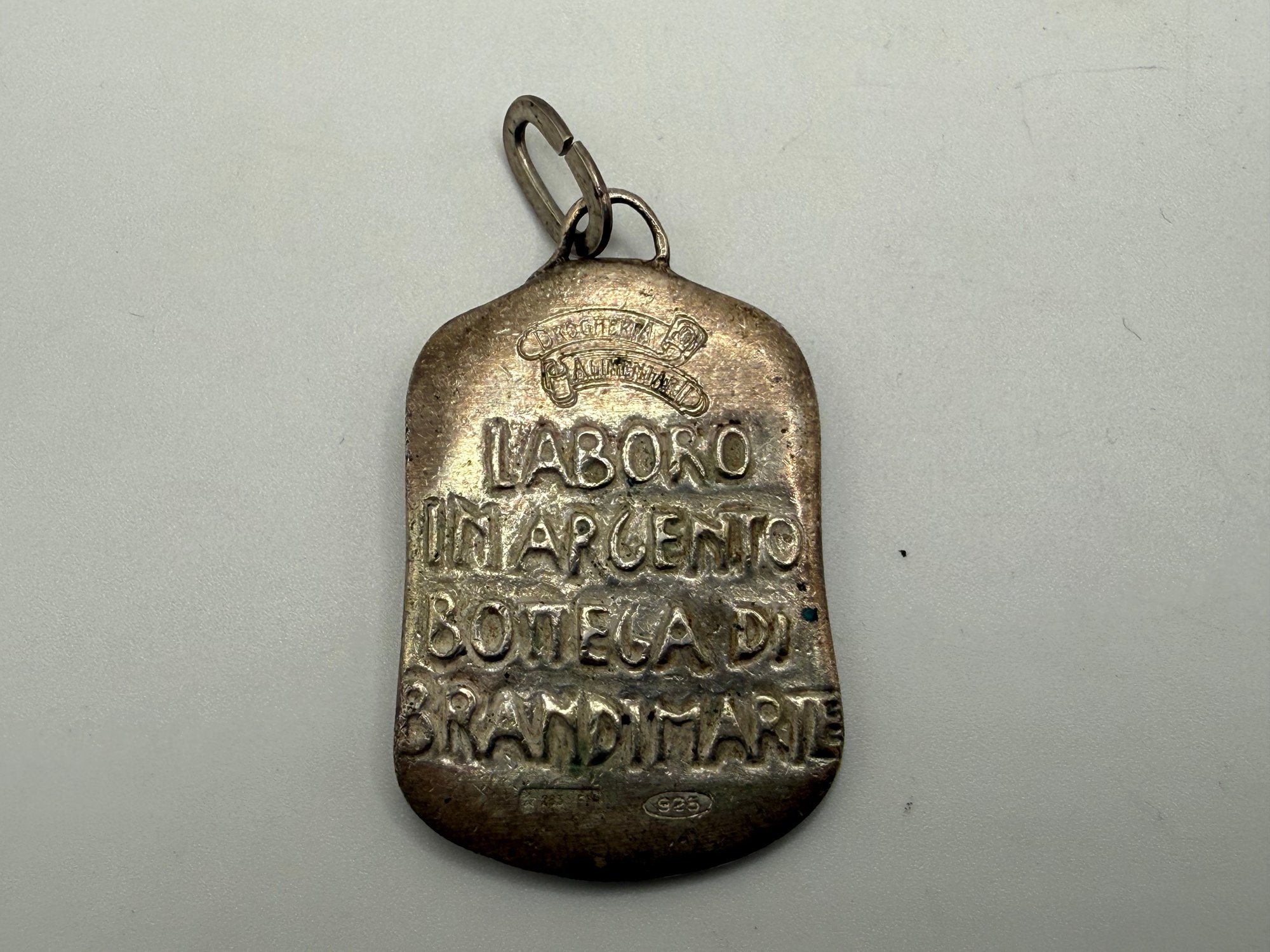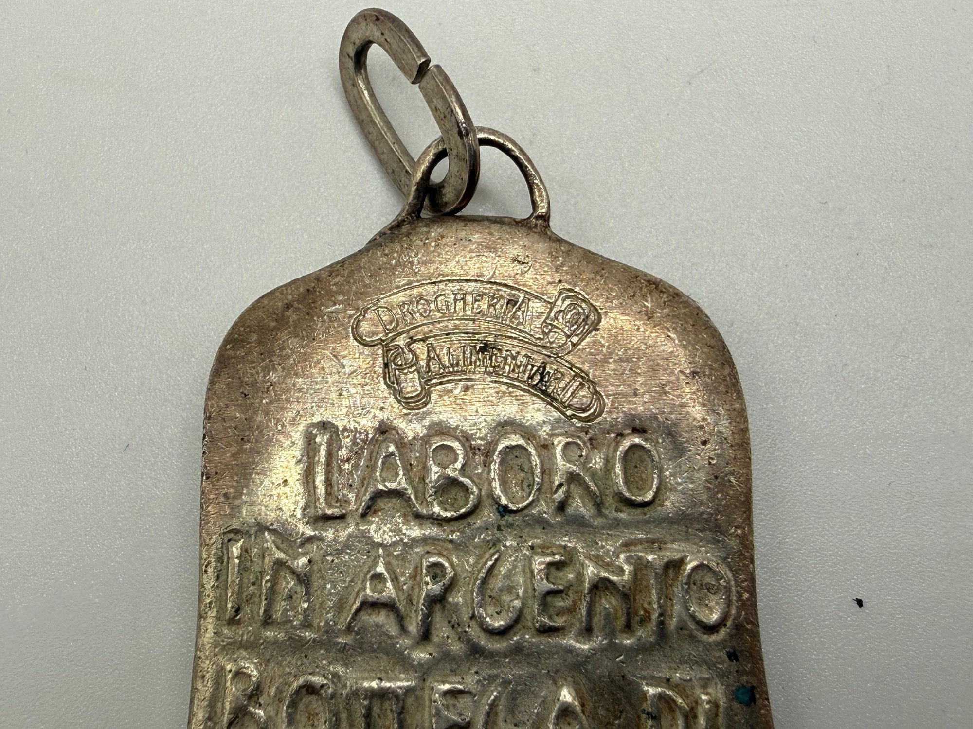 weighs over 36 grams; appears to be a tag for Black Pepper possibly by Brandimarte. The face reads "Piper Nigrum". The other side has a few marks. At the top is a mark from a drogheria, the middle reads "Laboro In Argento Bottega Di Brandimarte", with 925 at the bottom.