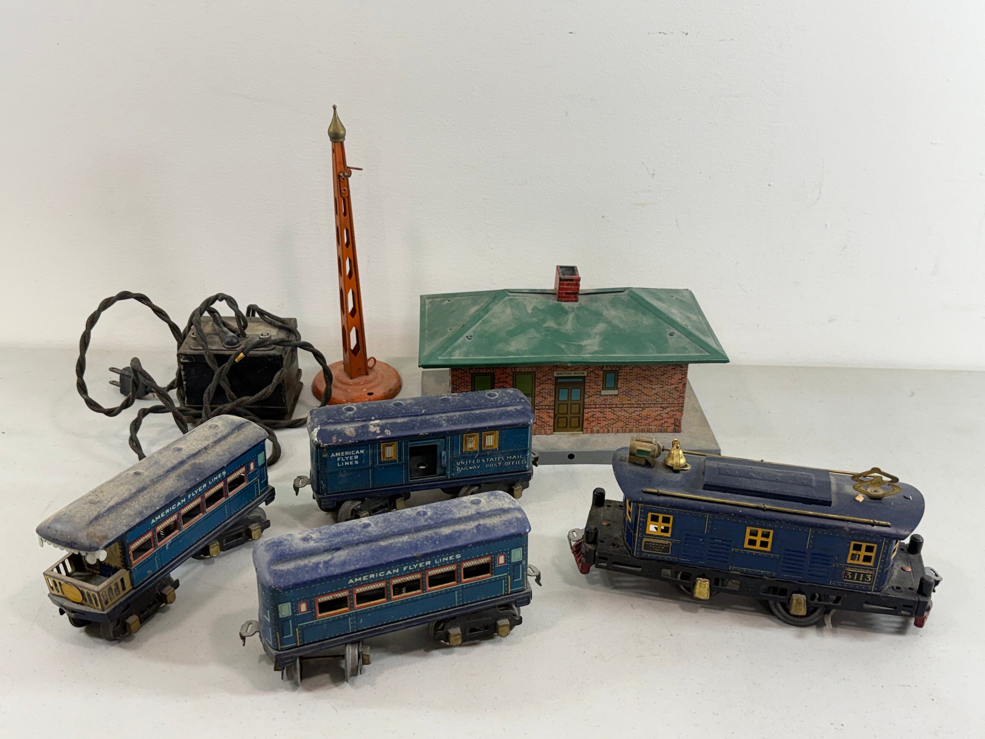 Includes Locomotive 3113 with 3 cars, transformer, station building and more. Untested