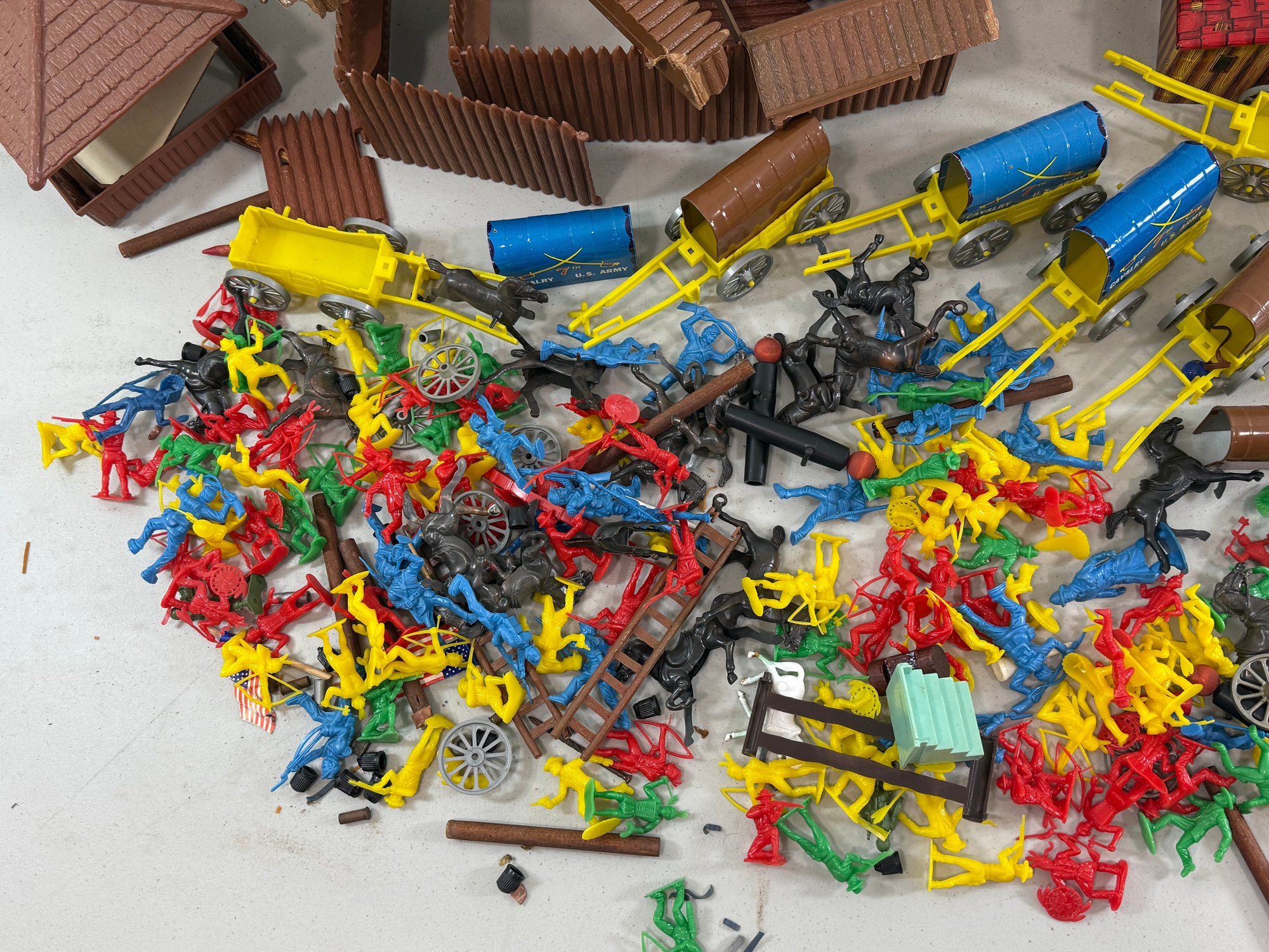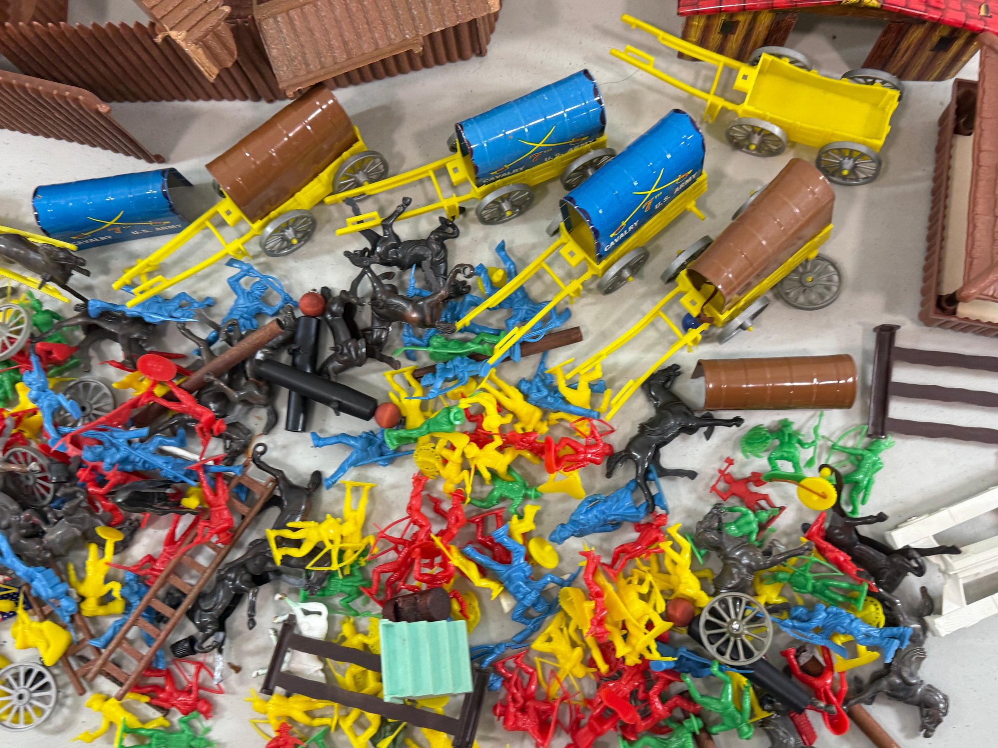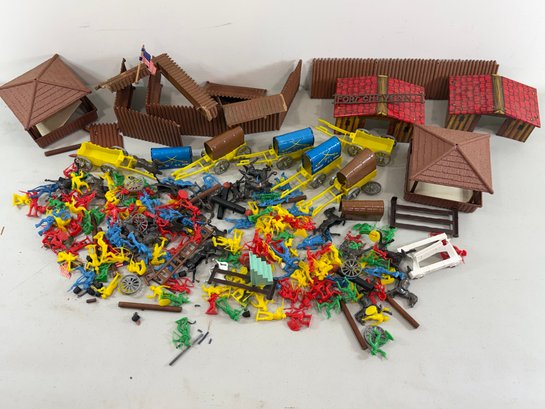 large group of vintage toys including Fort Cheyenne, US Army 7th Cavalry. Please review the photographs for more details