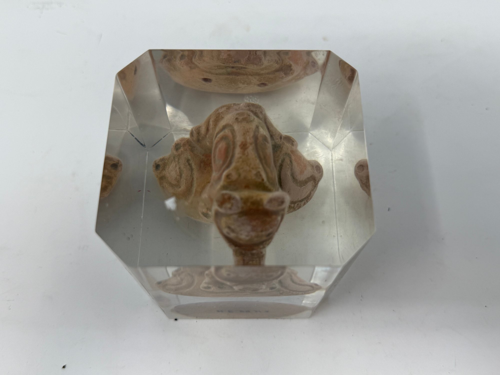 The cube measures 3.5" tall. Please review the photographs for more details. Museum Accession.
