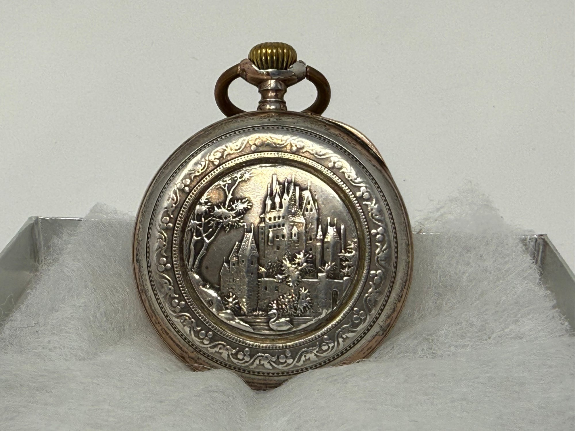 Running, 15 Rubis, 1.75". Landscape design on back of case.
