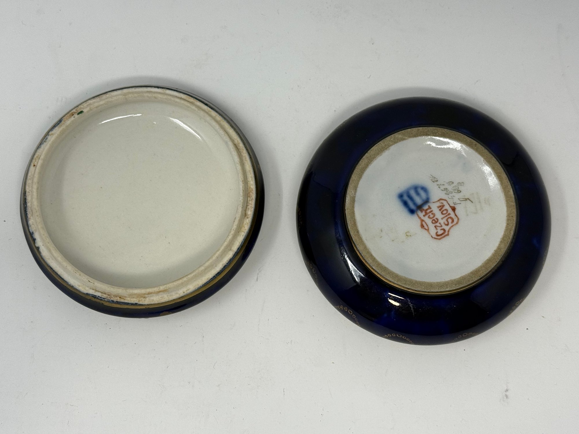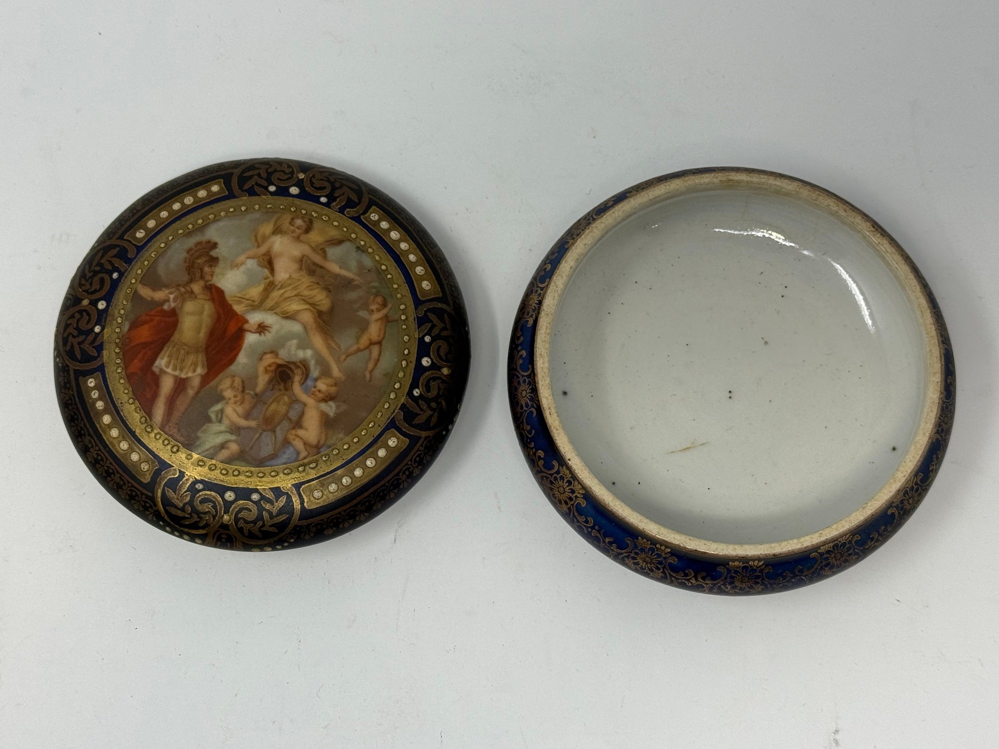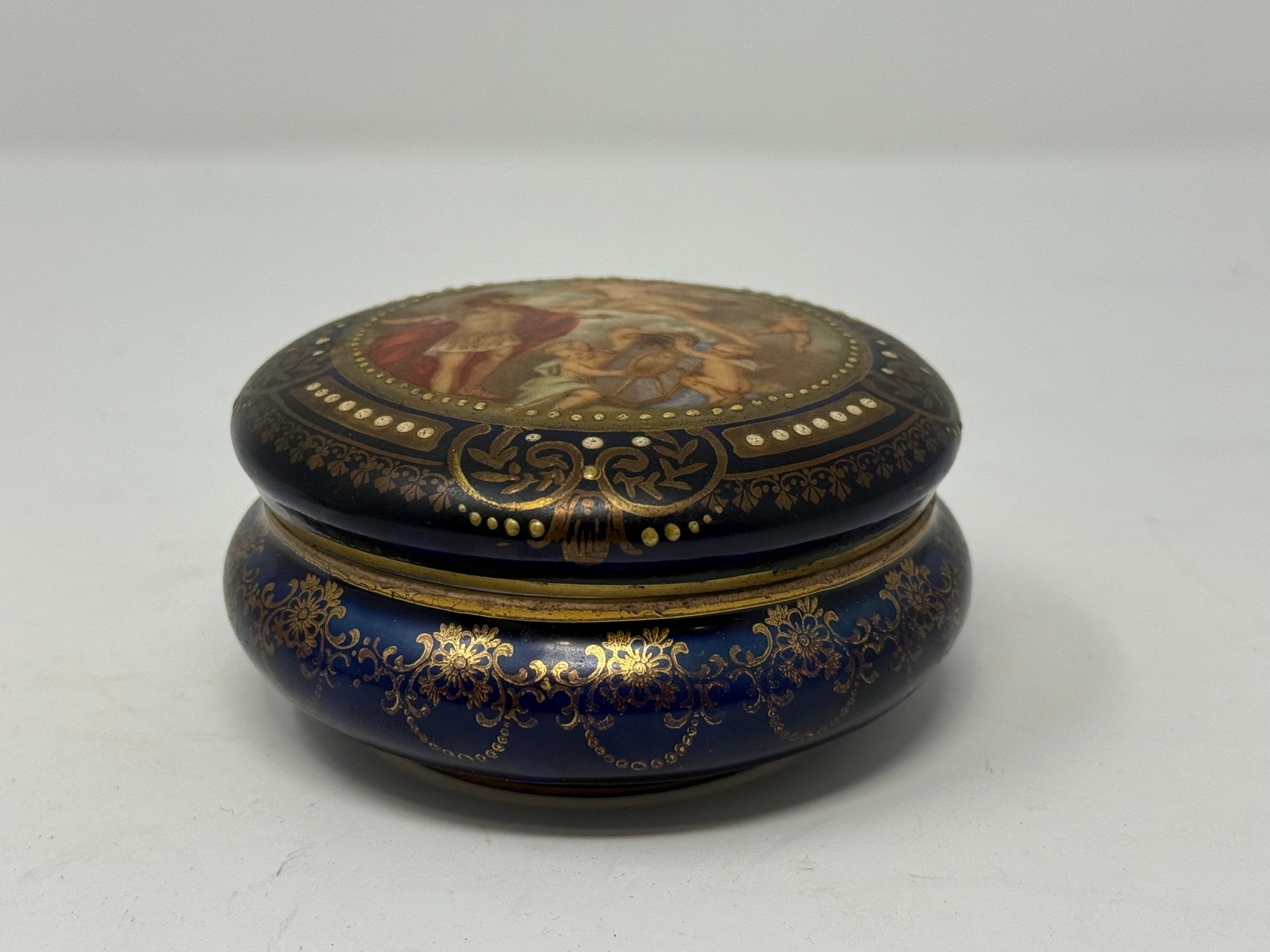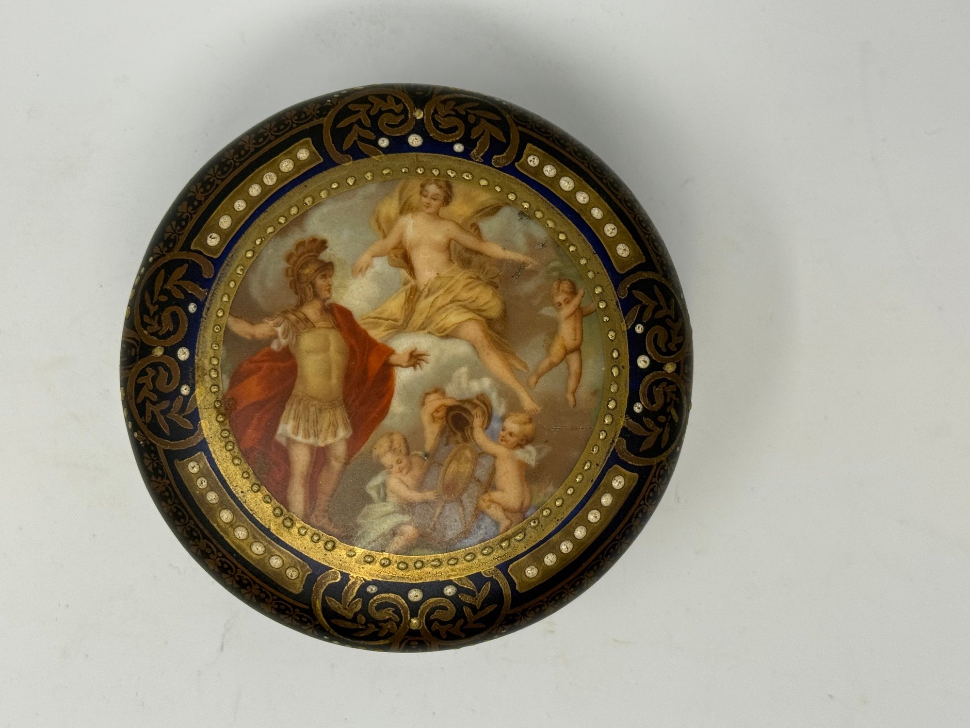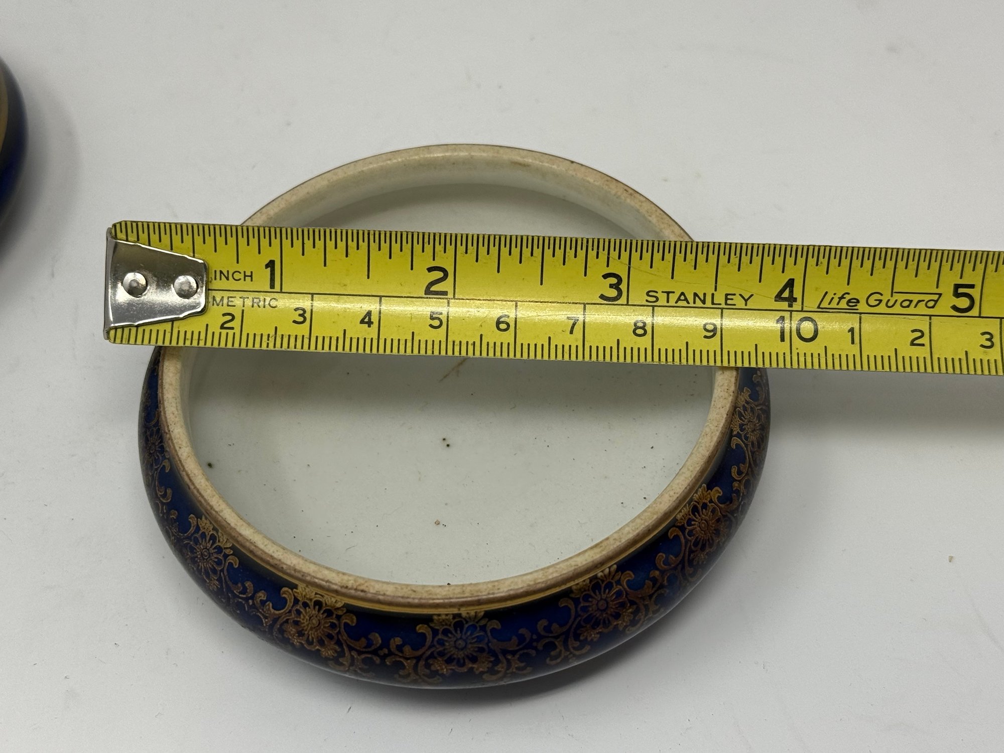 3.75" diameter, with multiple marks on the base of the jar. Please review the photographs for more details.