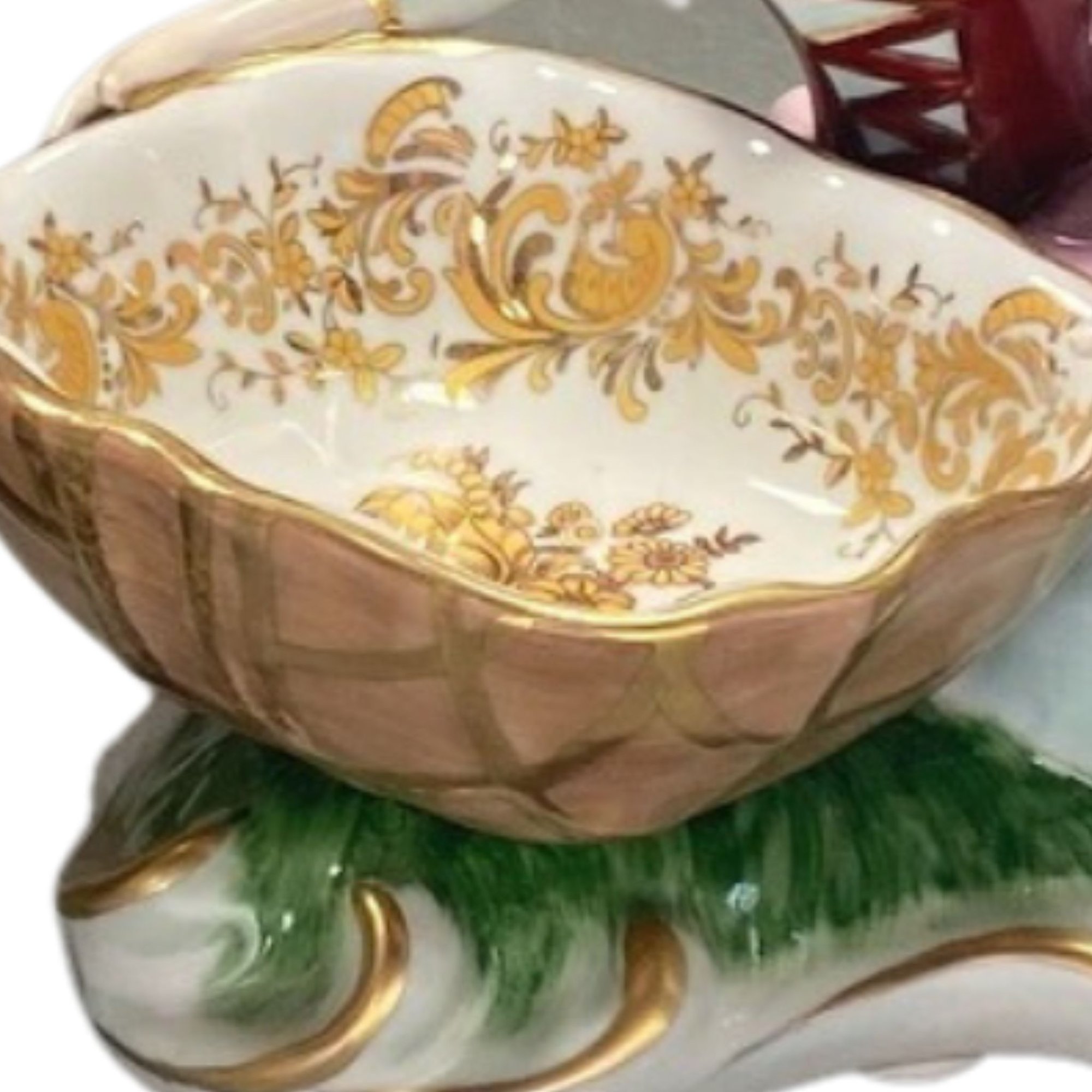 Up for auction is a highly decorative porcelain playing card holder set, designed to add a touch of elegance to any parlor or game room. This exquisite piece is not only functional but also serves as a wonderful statement piece that enhances the ambiance of any gaming environment.